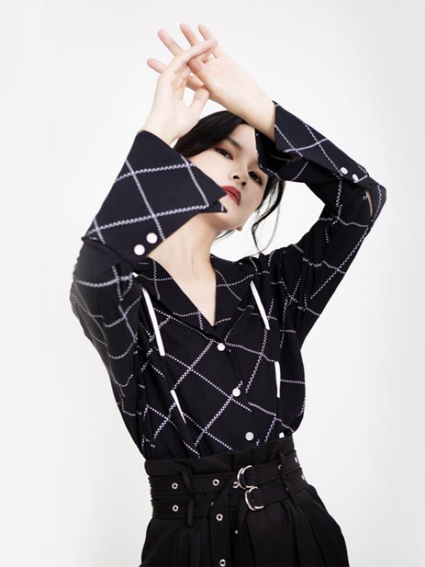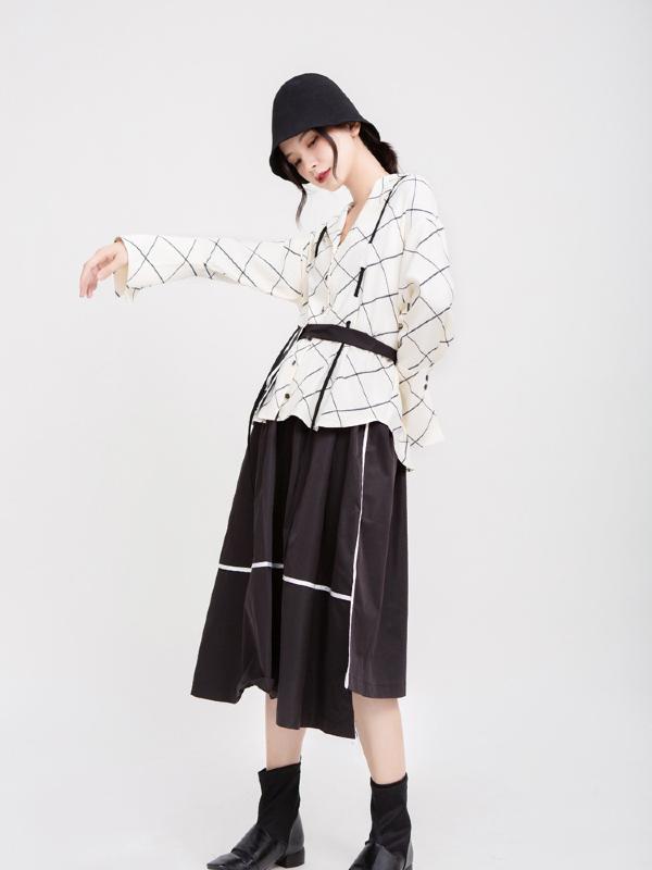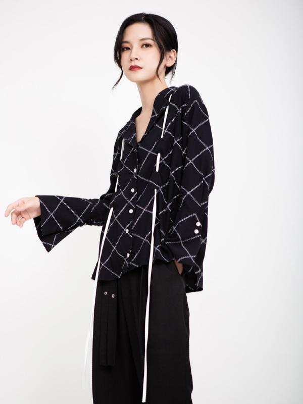 CASUAL DRAWSTRING RUFFLED PLAID SHIRT