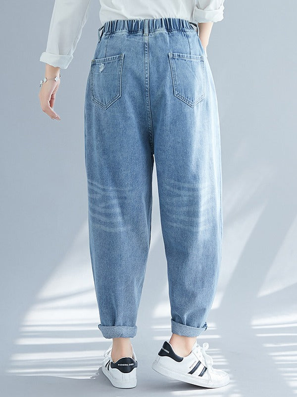 CASUAL ELASTICITY HOLE CAPRI-PANTS