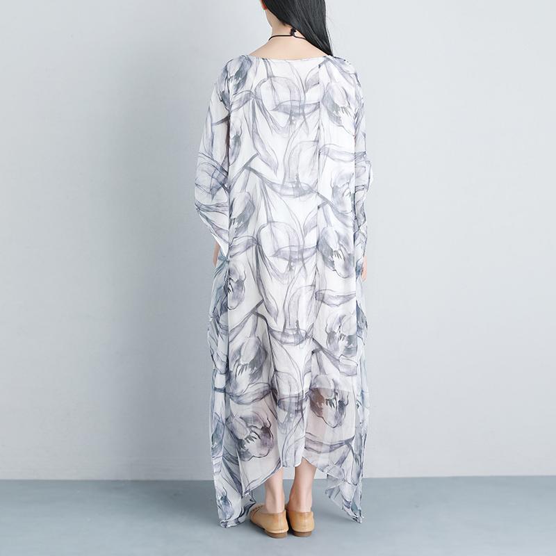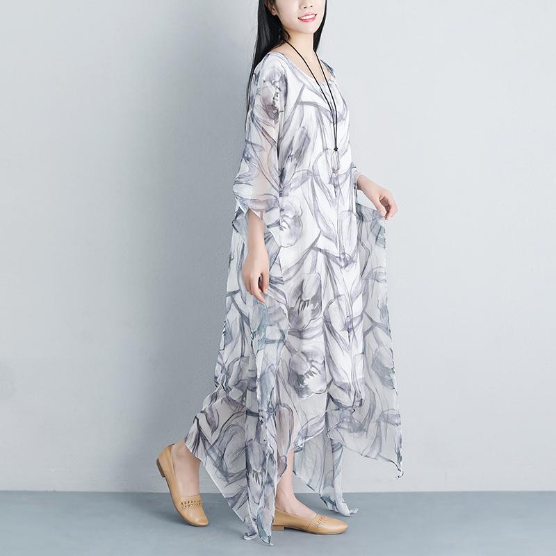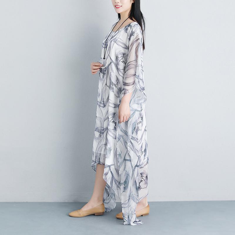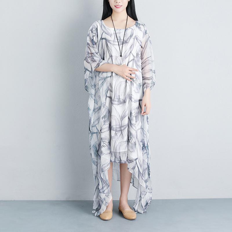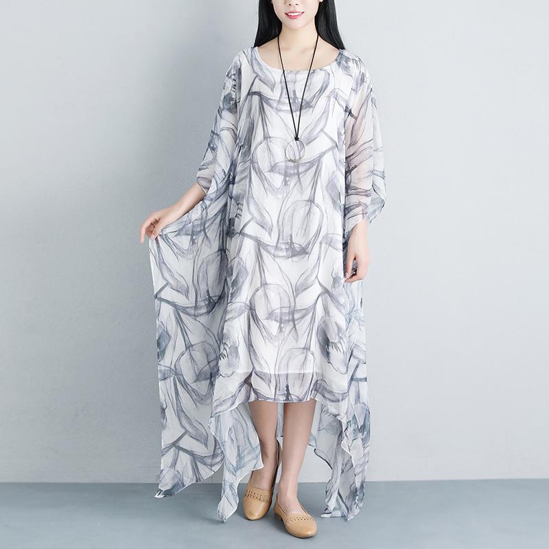 Summer Loose Casual Fake Two-piece Half Sleeve Gray Long Dress
