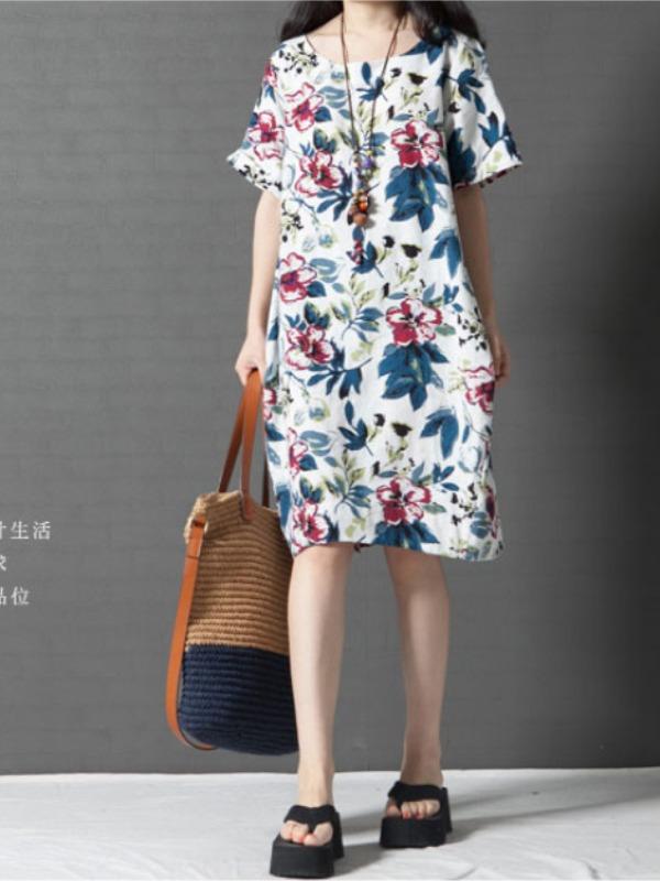 Casual Floral Cotton Short Dress