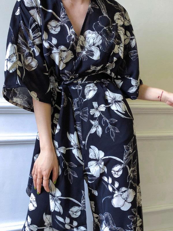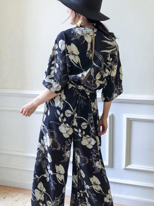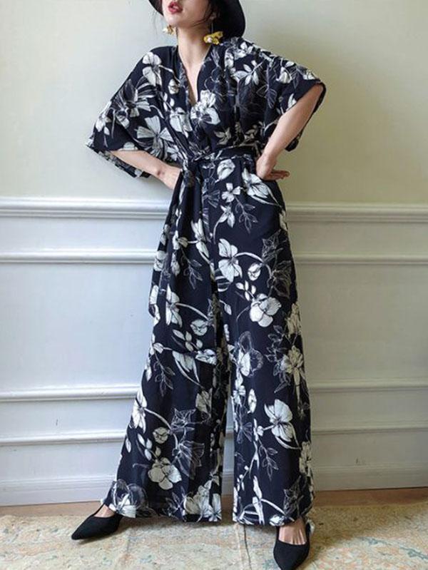 Casual Flower Printed Lace-up Jumpsuit