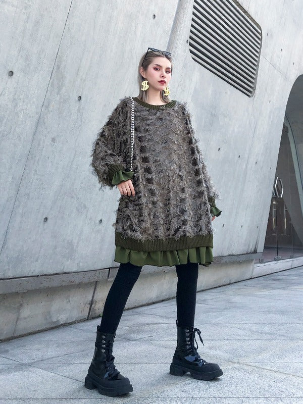 CASUAL FRINGED VELVET TASSELED T-SHIRT