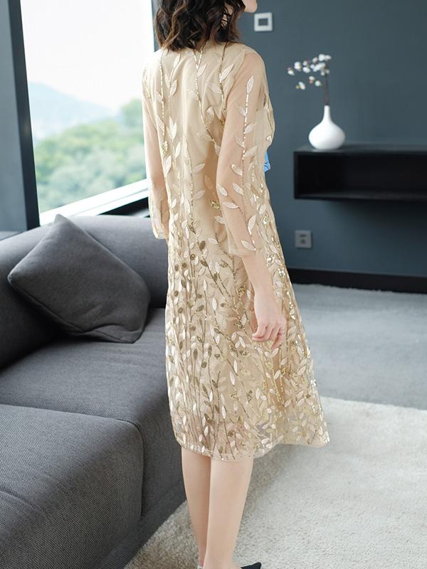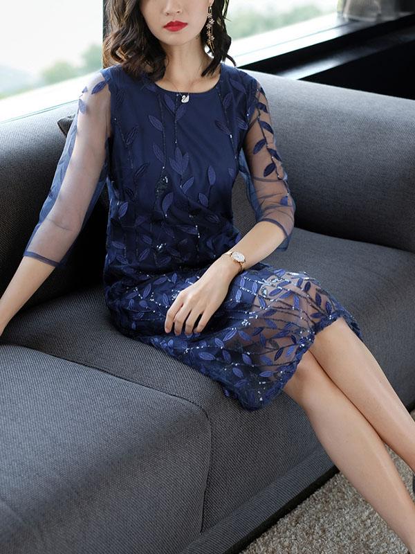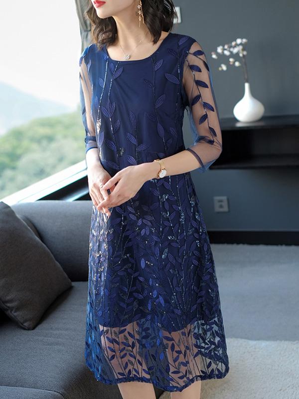 Casual Grenadine Embroidered Midi Dress