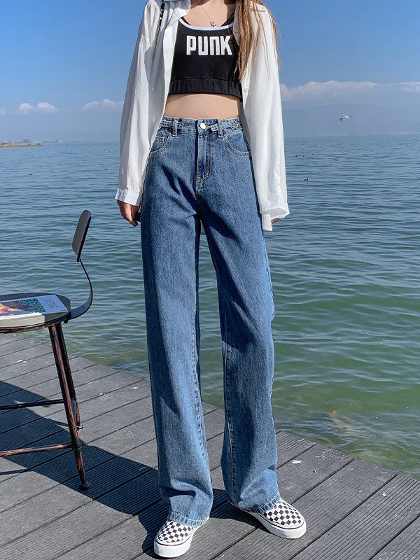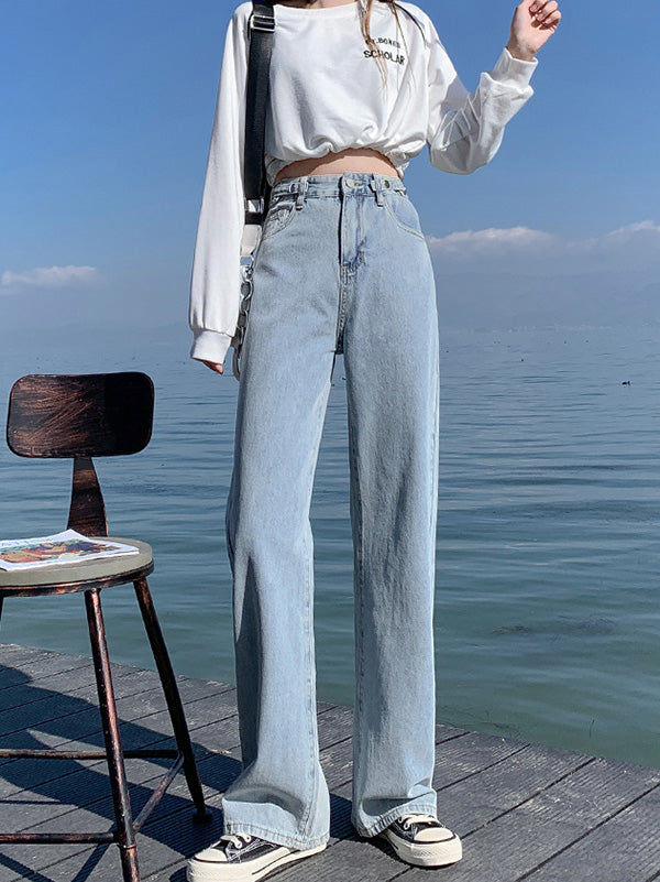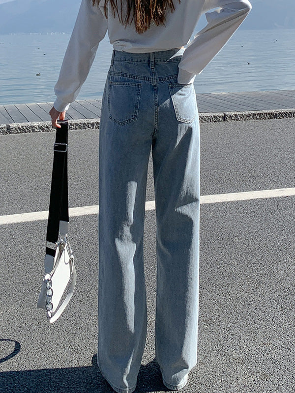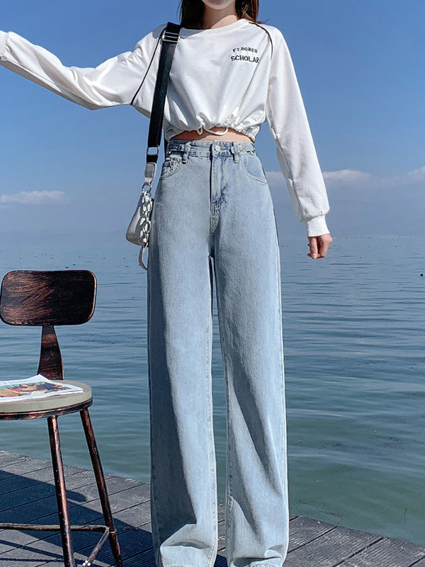 Casual High Waisted Wide Leg Denim Blue Jean Pants Bottoms