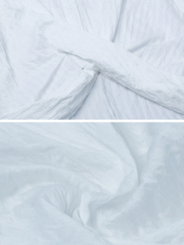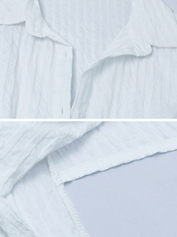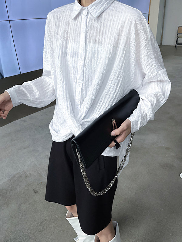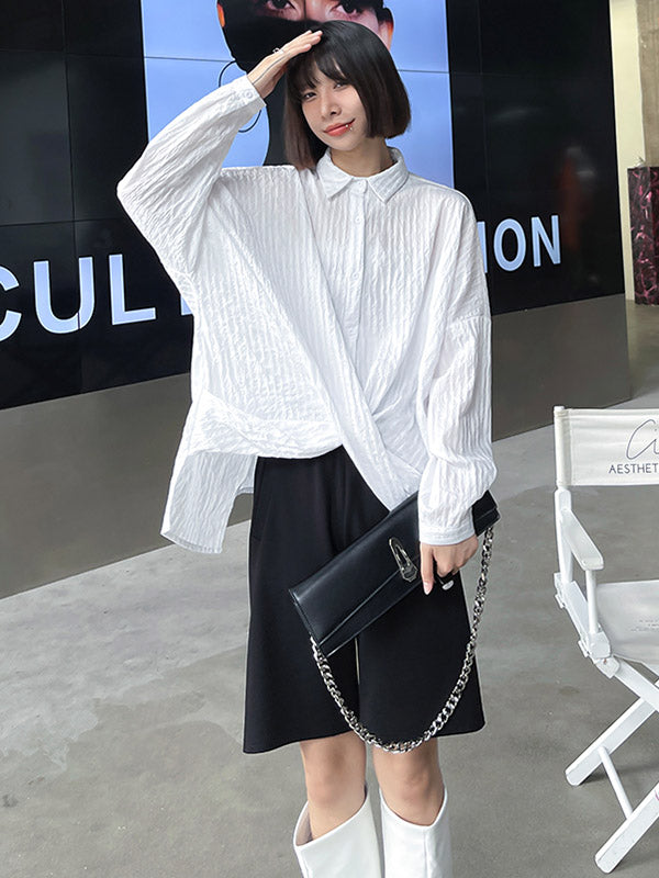 Casual Irregular Solid Color Buttoned Lapel Collar Long Sleeves Blouse