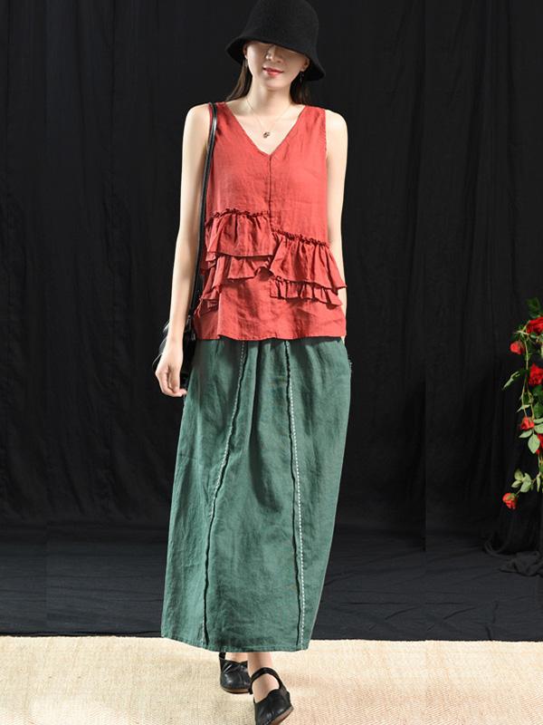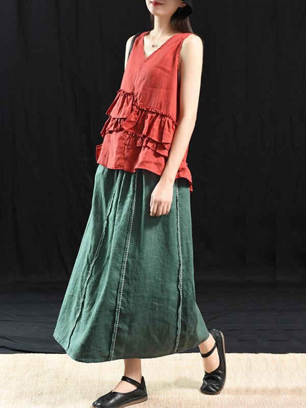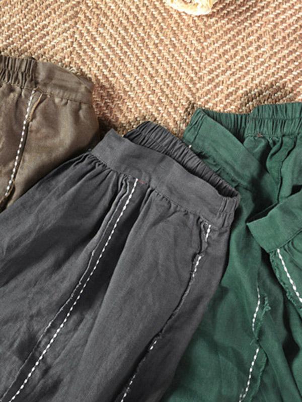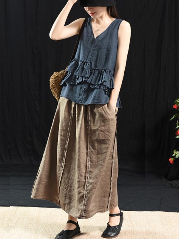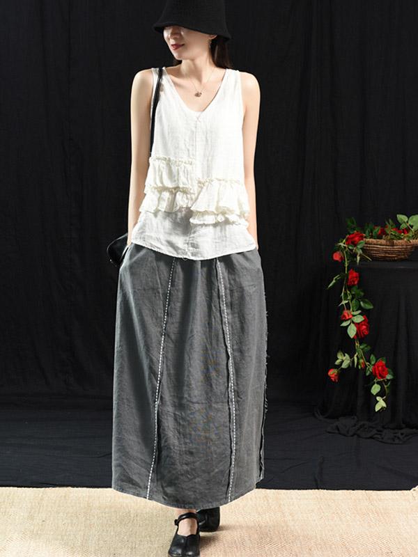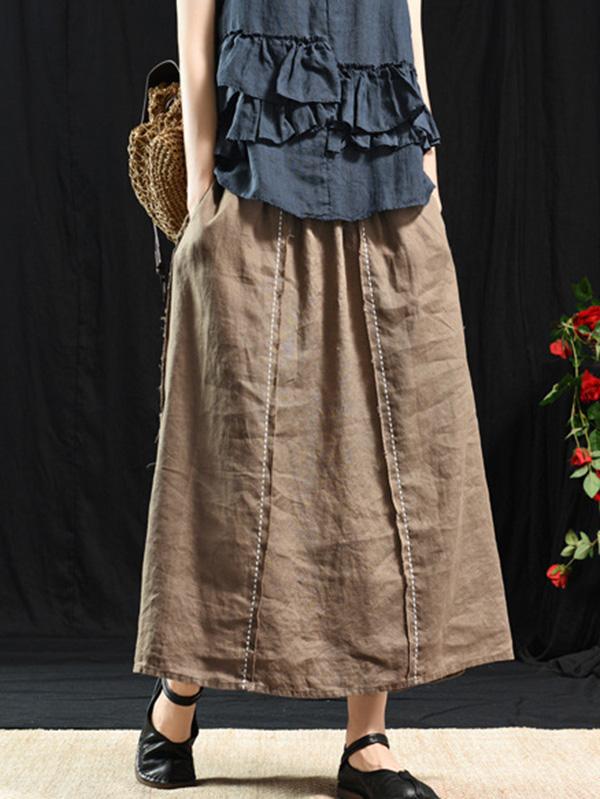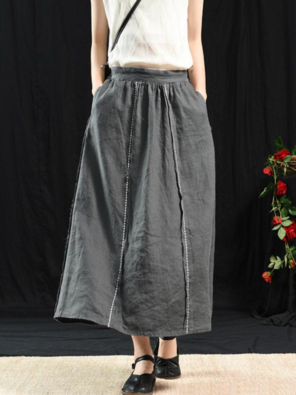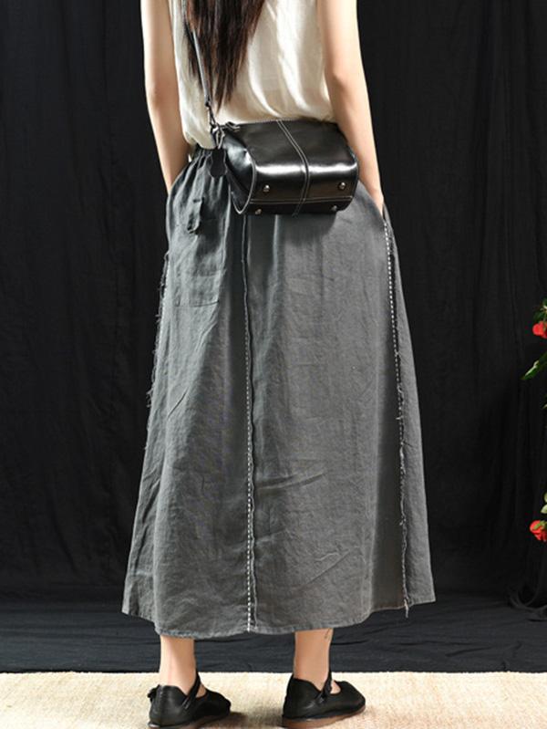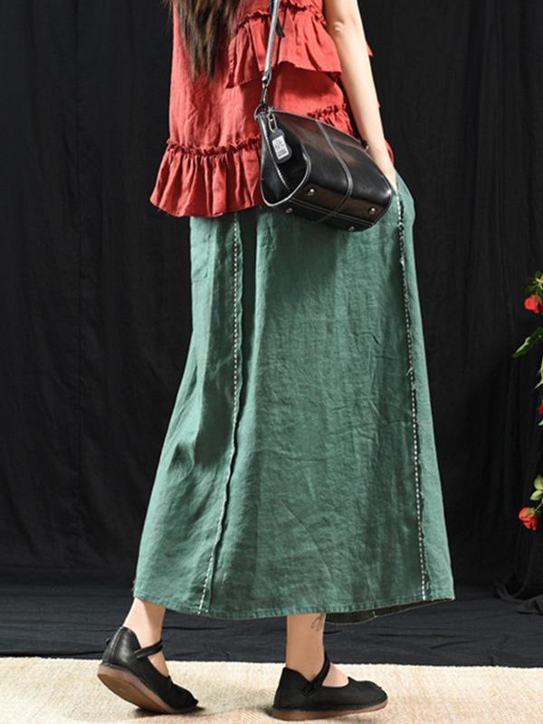 Casual Linen Cropped Long Skirt