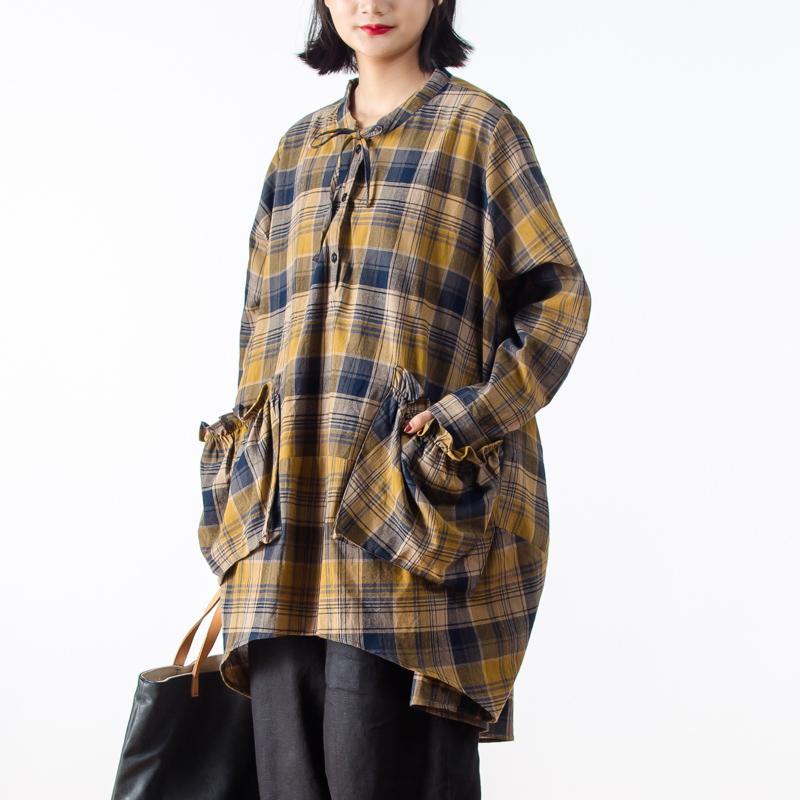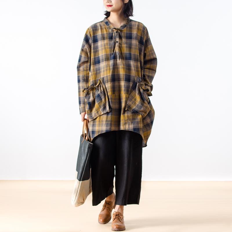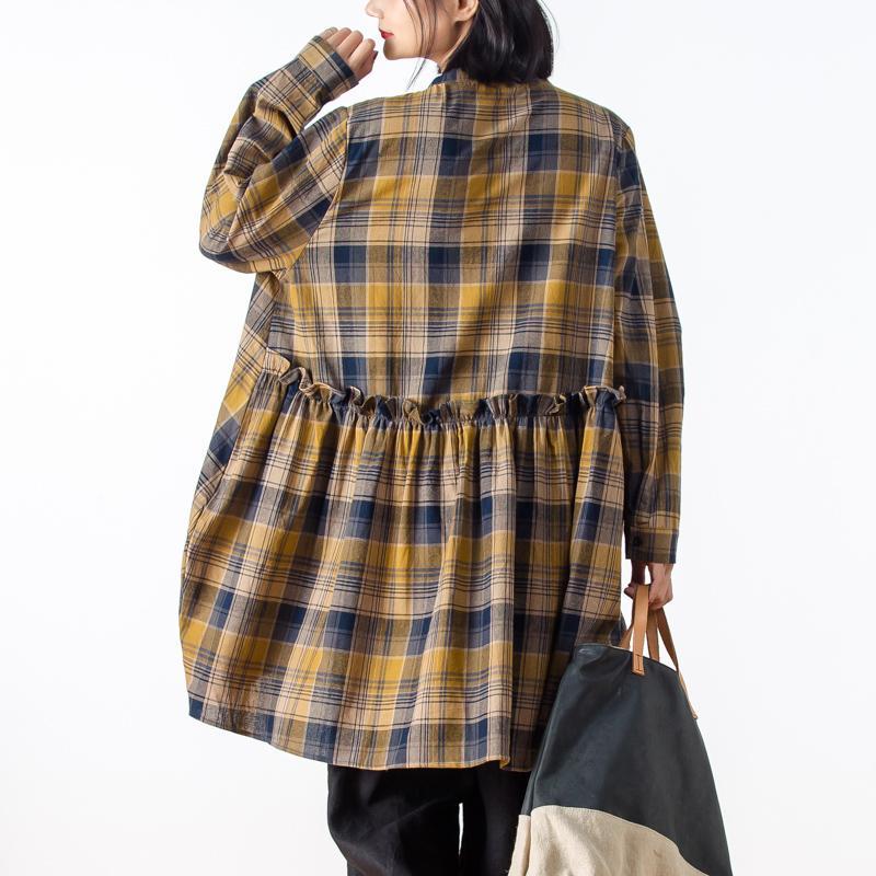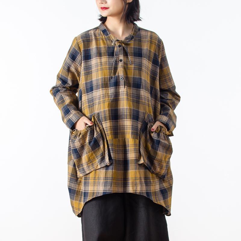 Casual Long Sleeve Yellow Plaid Women Shirt