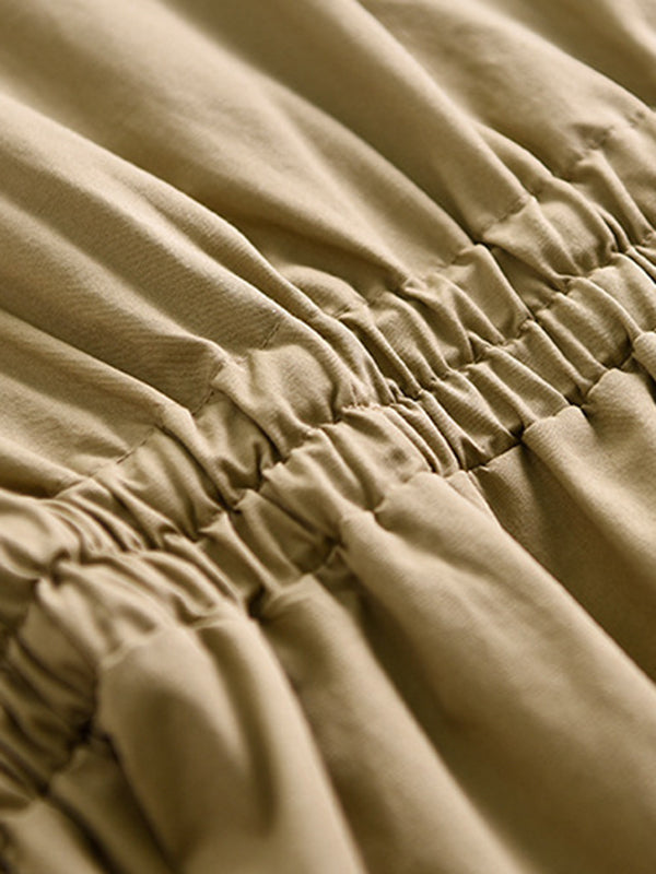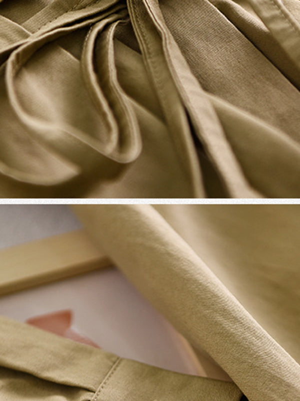 Casual Long Sleeves Loose Drawstring Tied Solid Color Lapel Collar Midi Dresses