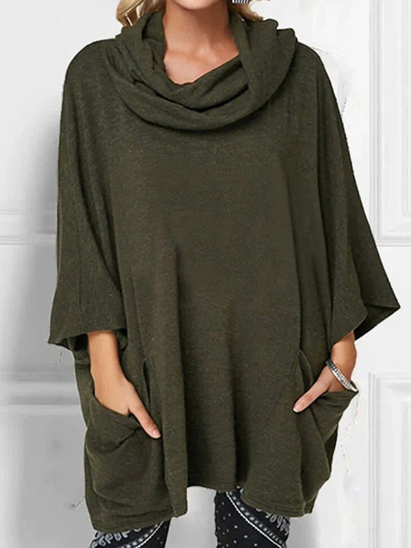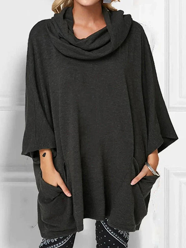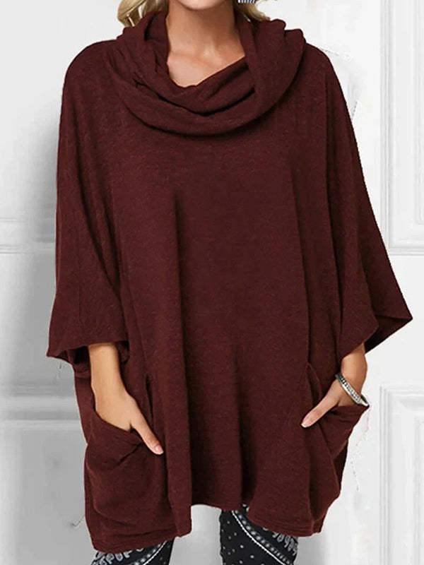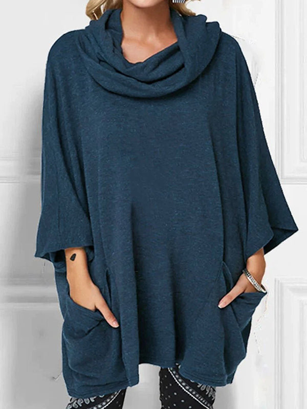 Casual Long Sleeves Loose Solid Color Heaps Collar T-Shirts Tops
