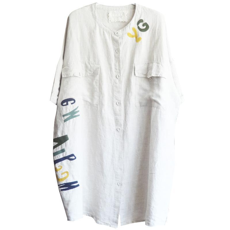 Casual Loose Letter Embroidery Midi Shirt Dress