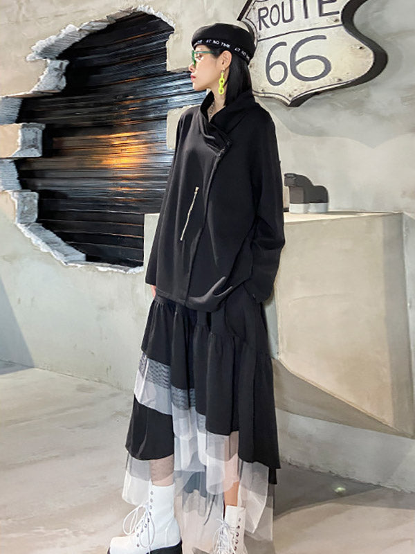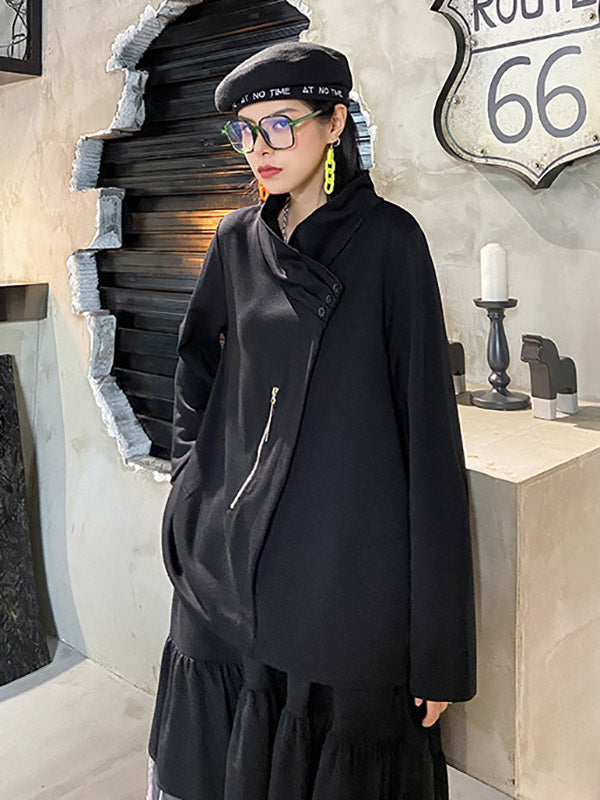 Casual Loose Long Sleeves Asymmetric Stand Collar T-Shirts Tops