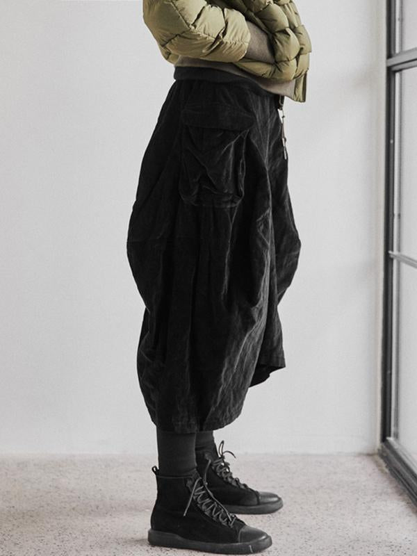 Casual Loose Pleated Texture Pure Color Pants