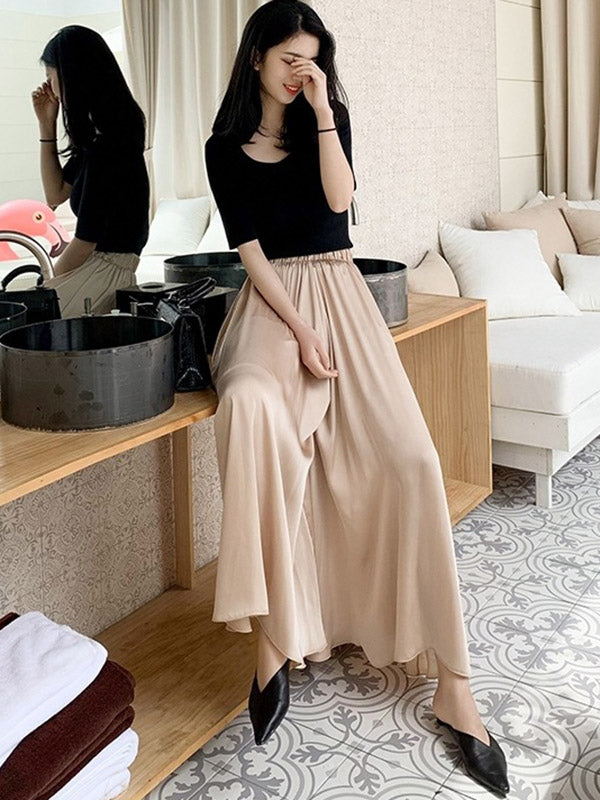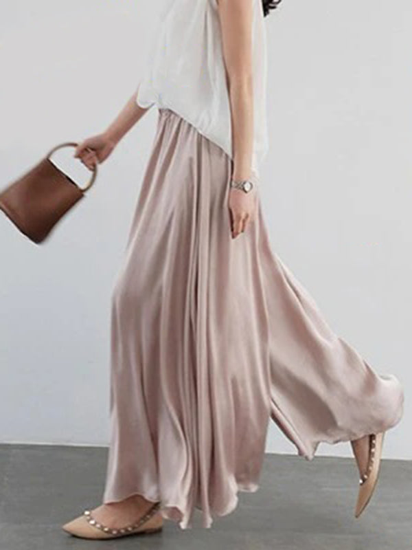 Casual Loose Solid Color Elasticity High-Waist Wide Legs Pants