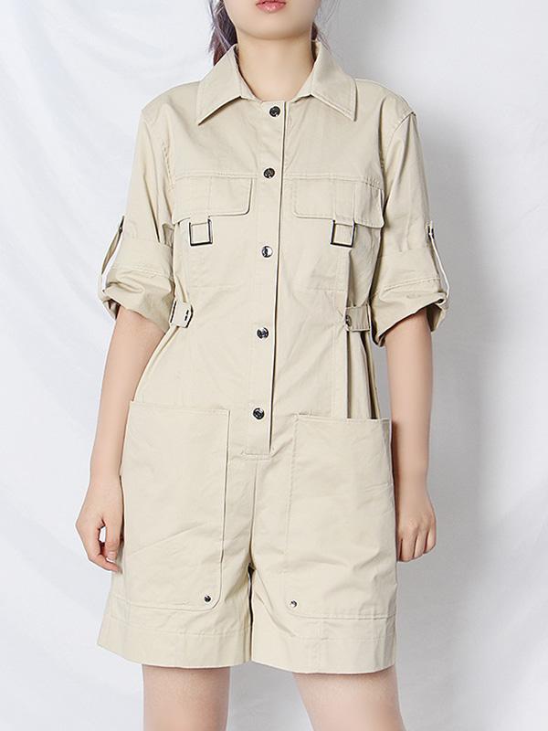 Casual Loose Solid Color Pockets Rompers
