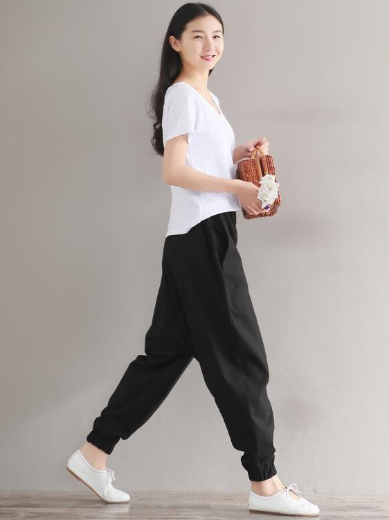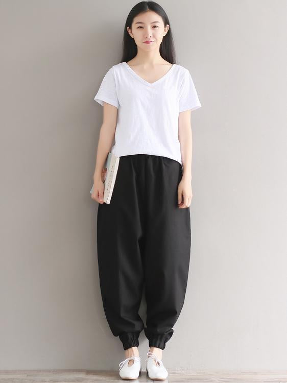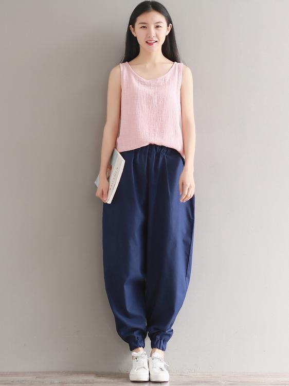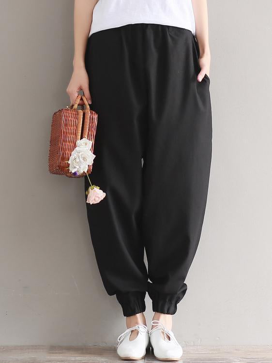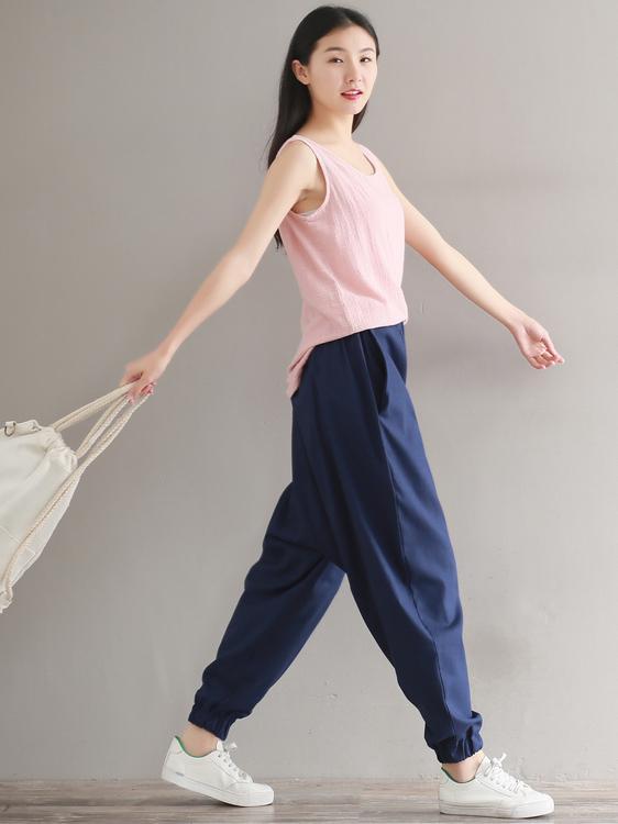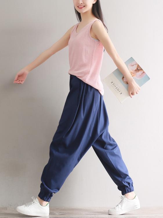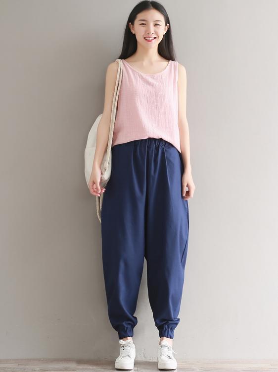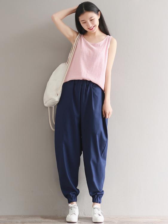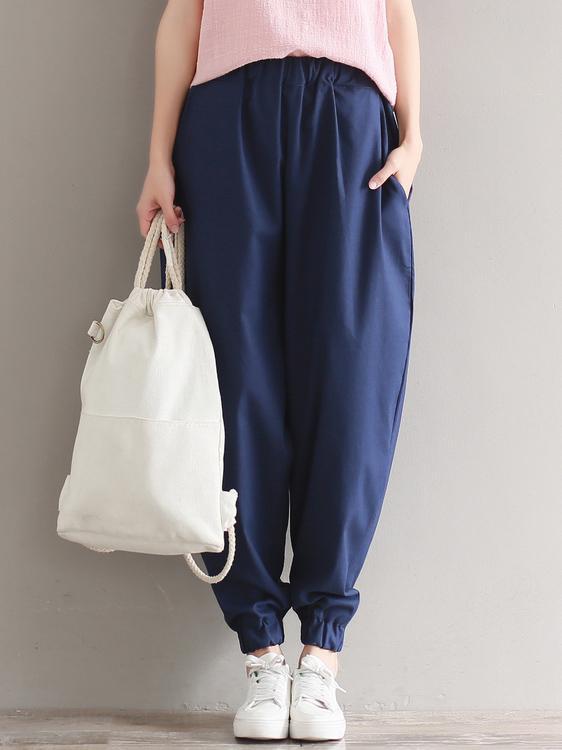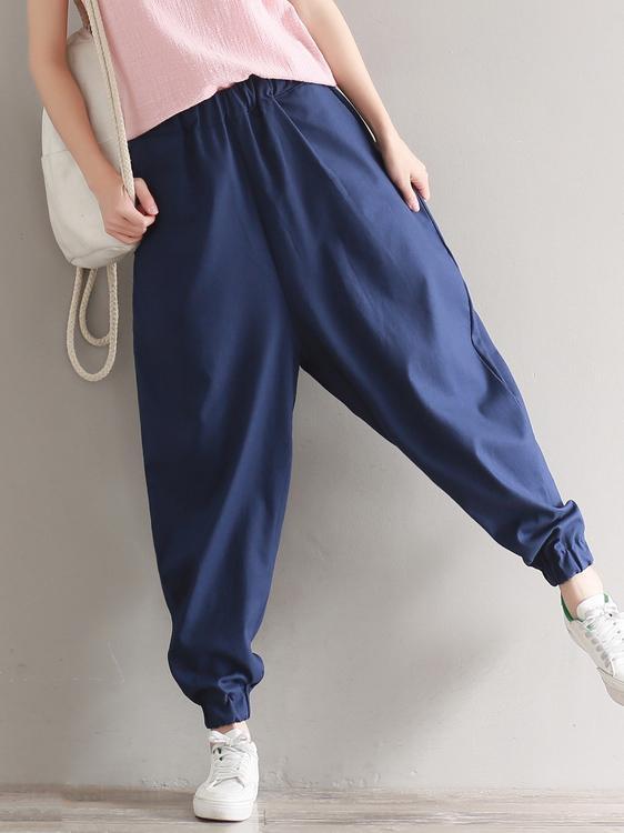 Casual Loosen Broaden Cotton Pants in Blue or Black Color