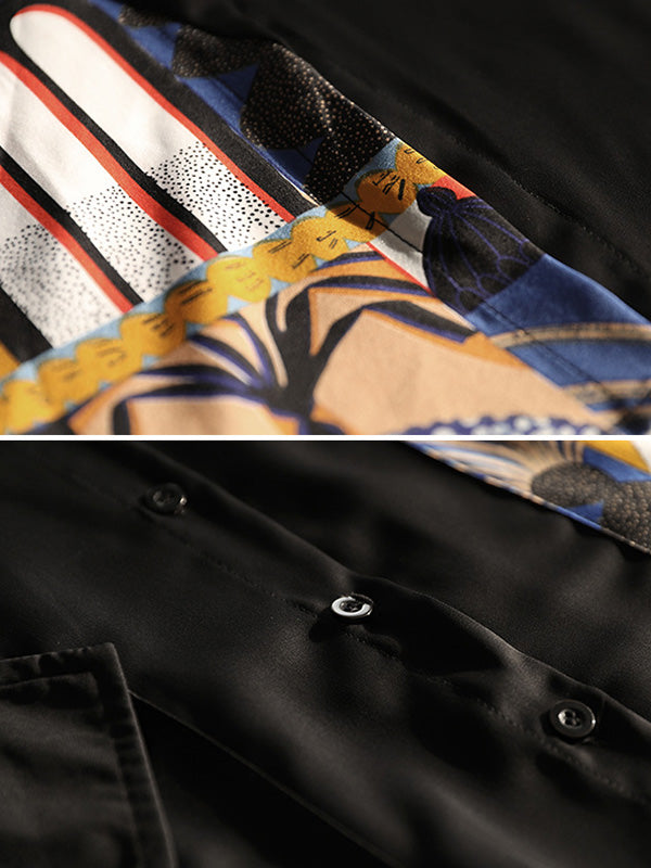 Casual Original Printed Split-Joint With Pocket Buttoned Lapel Collar Batwing Sleeves Loose Mini Shirt Dress