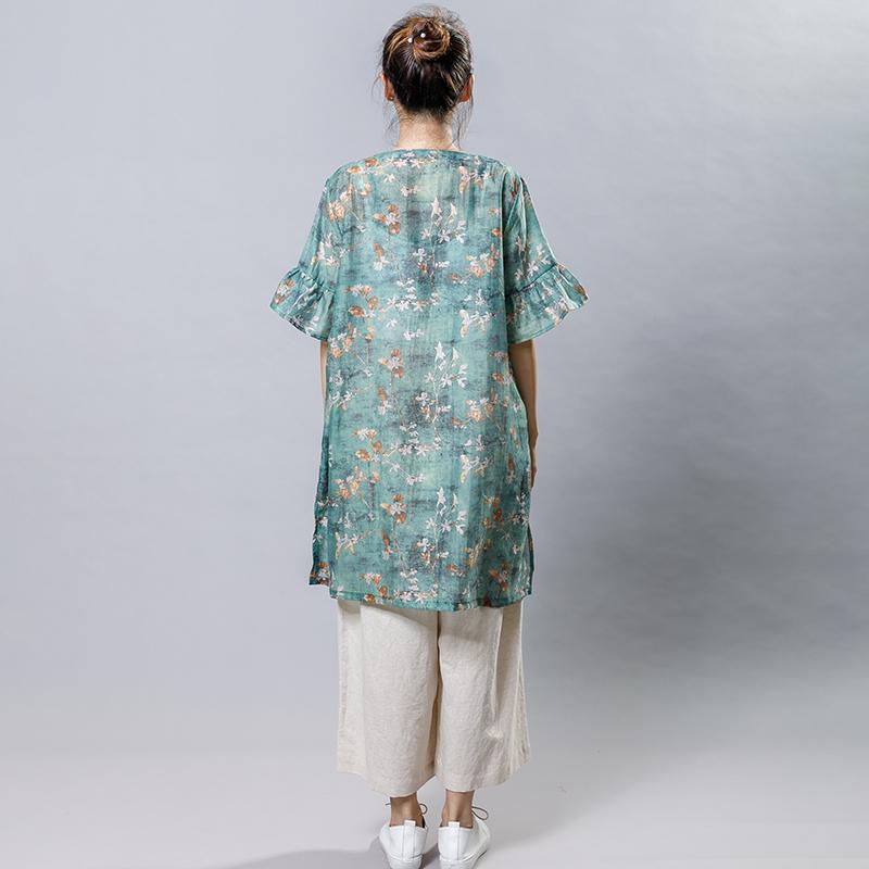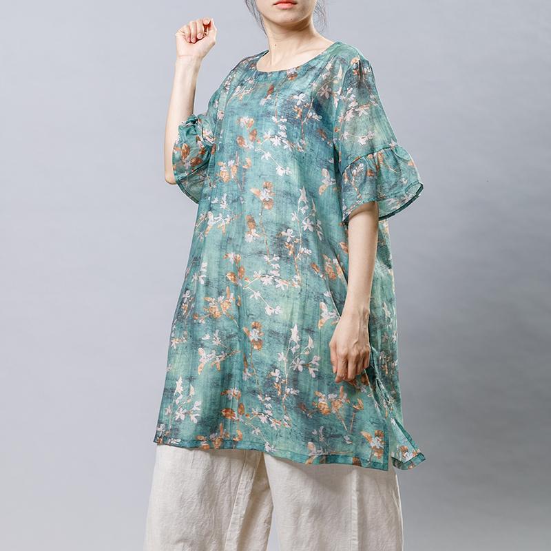 Casual Plant Printed Split Loose Mini Dress