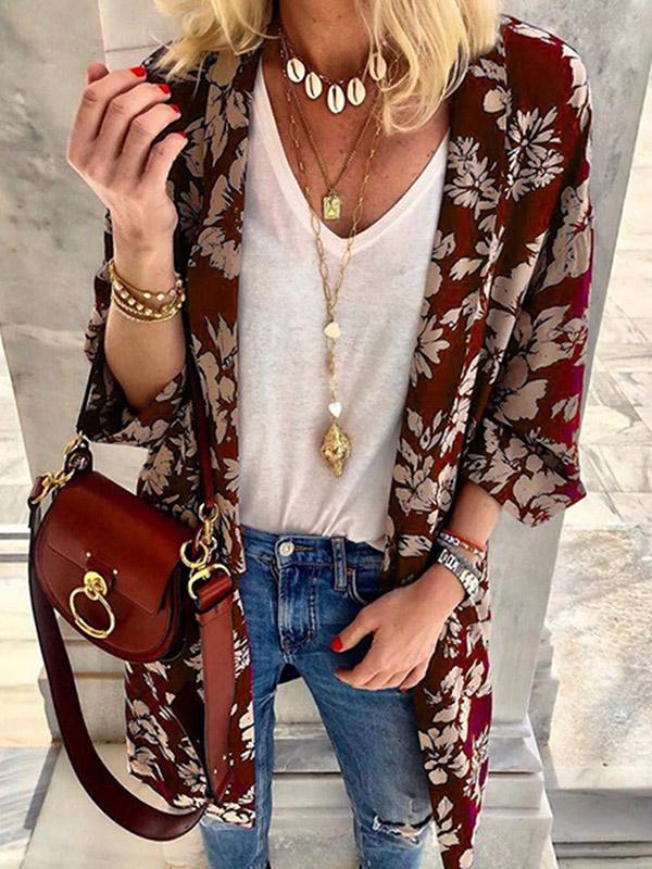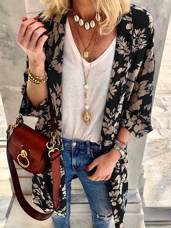 Casual Printed Batwing Sleeves Cover-up