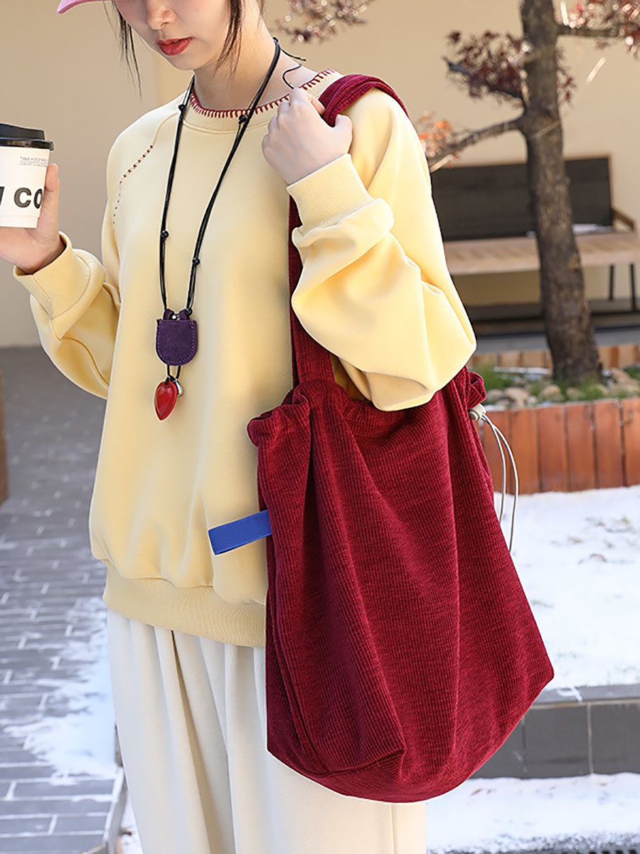 Casual Pure Color Corduroy Shoulder Bag