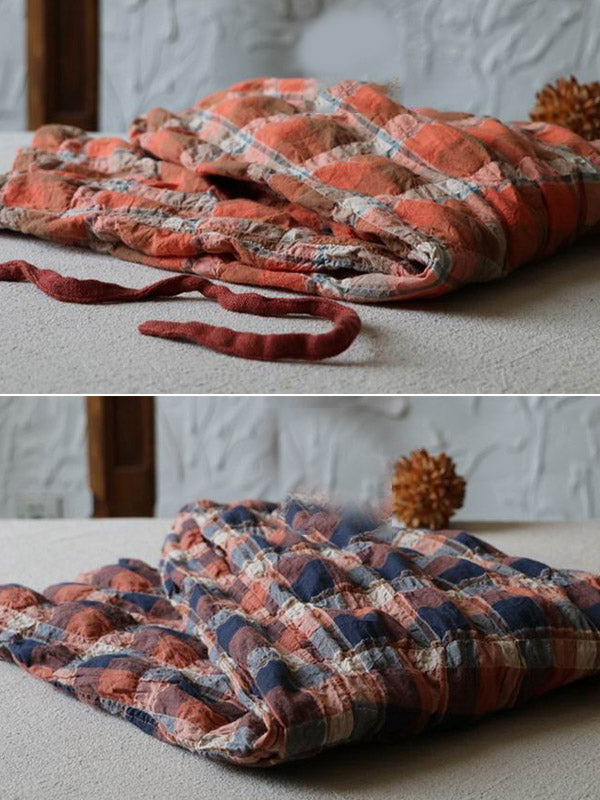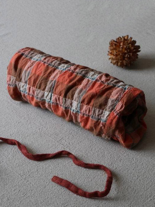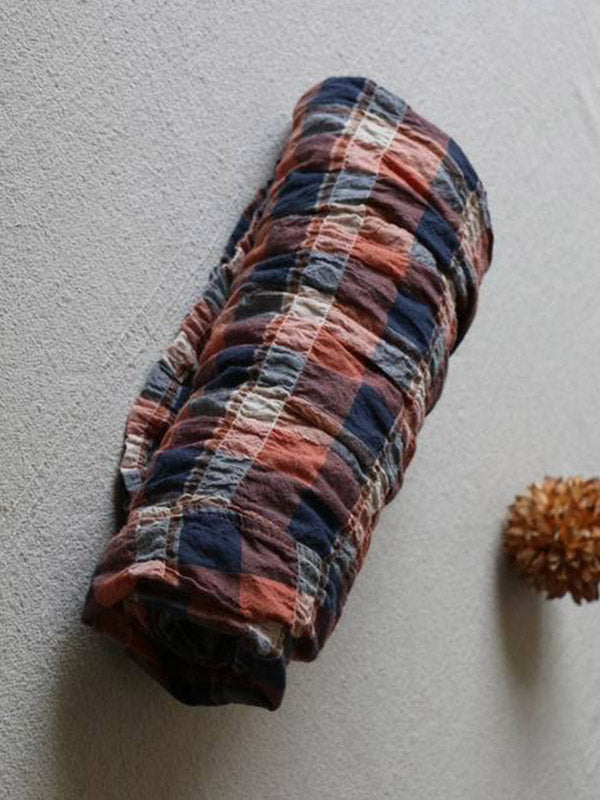 Casual Ramie Cotton Plaid Wide Leg Loose Pants