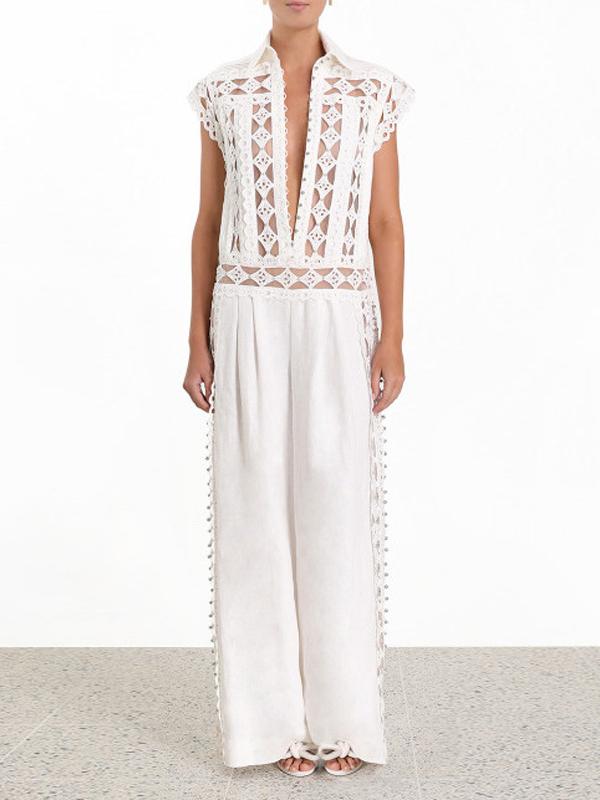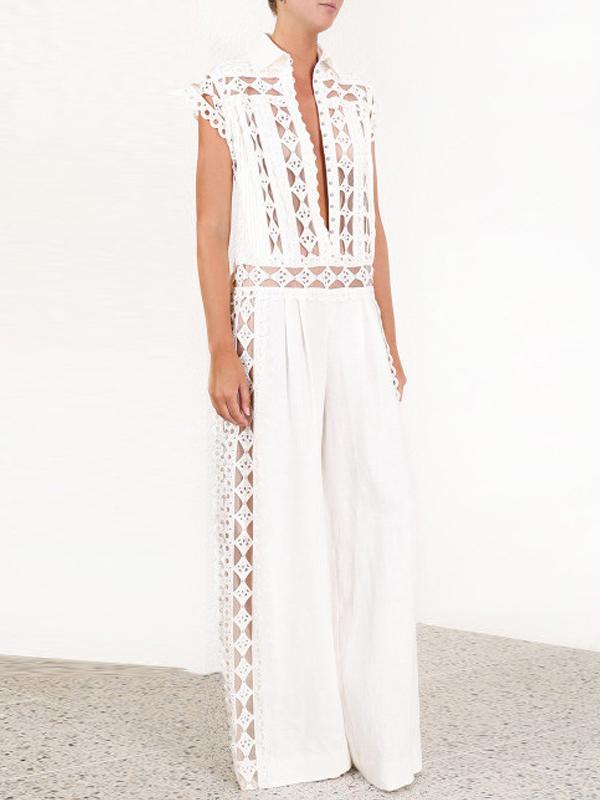 Casual Rivet holes Sleeveless Wide Leg Chic Jumpsuits