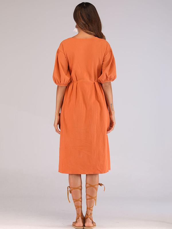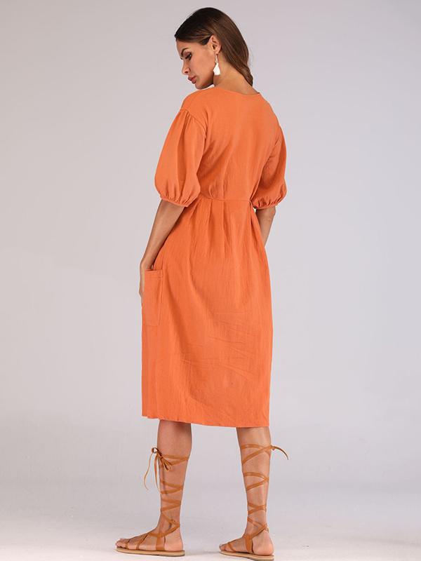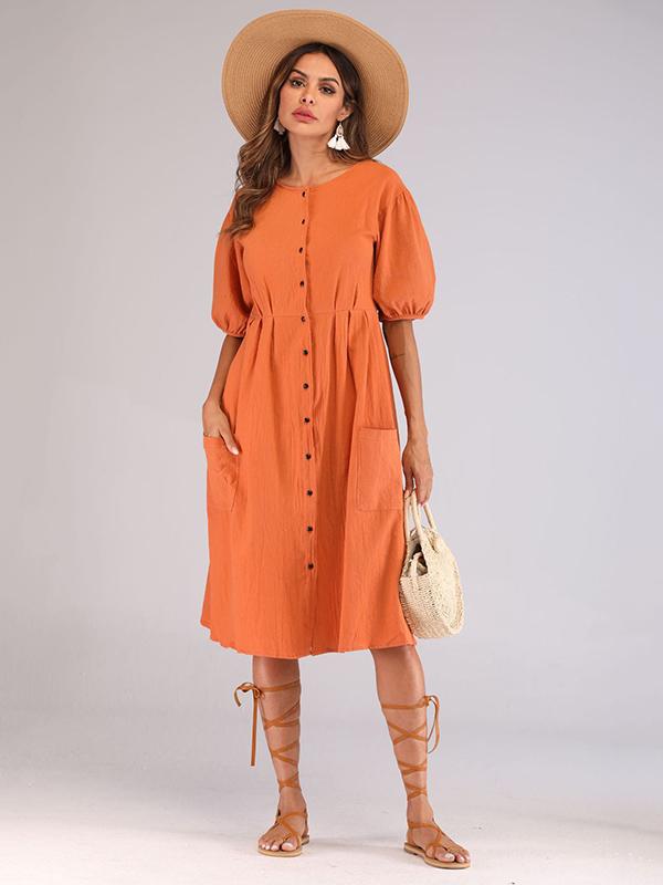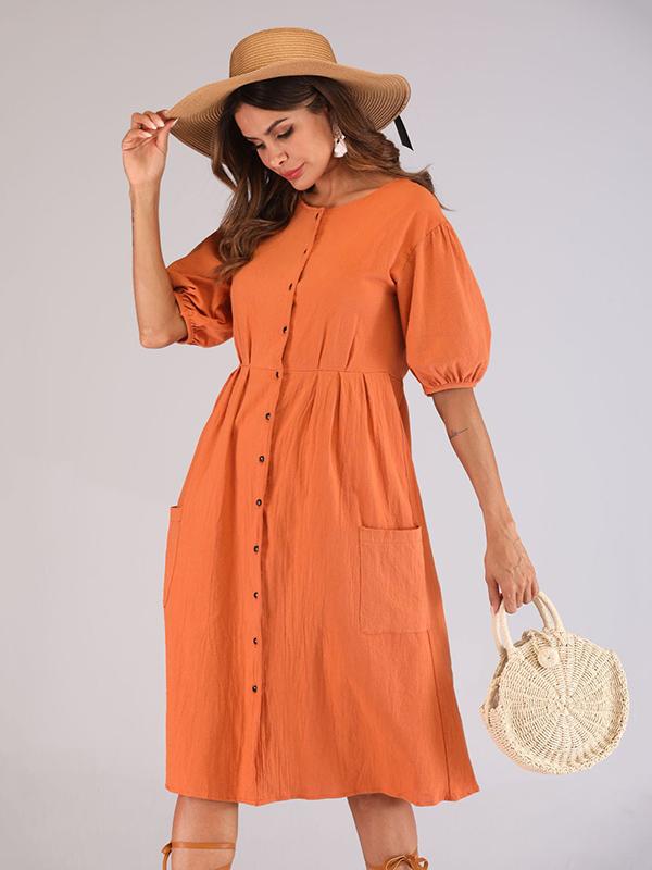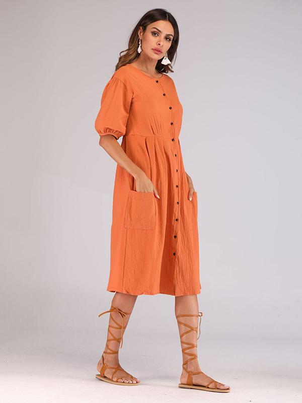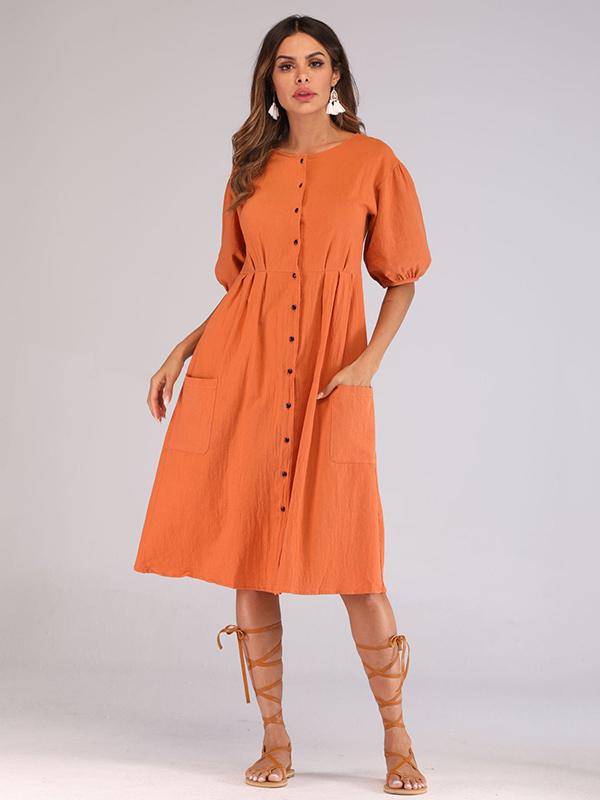 Casual Round-Neck solid Midi Dresses