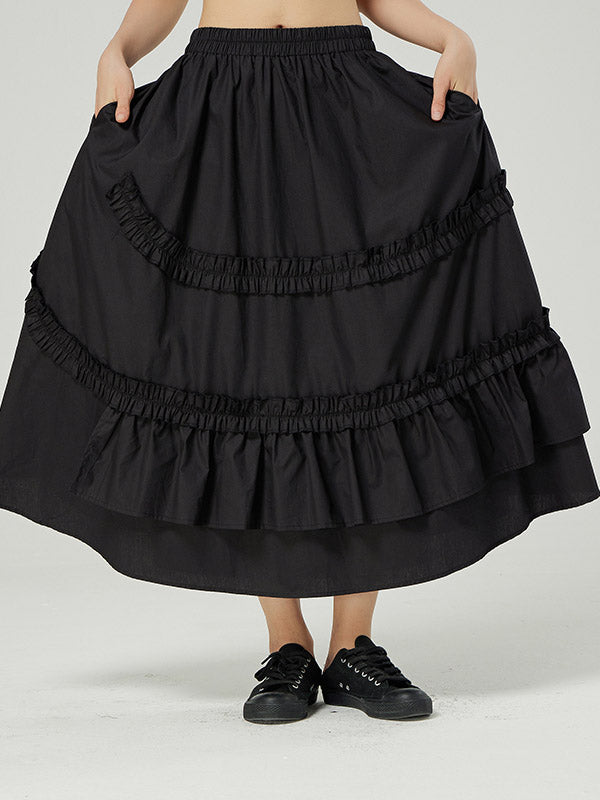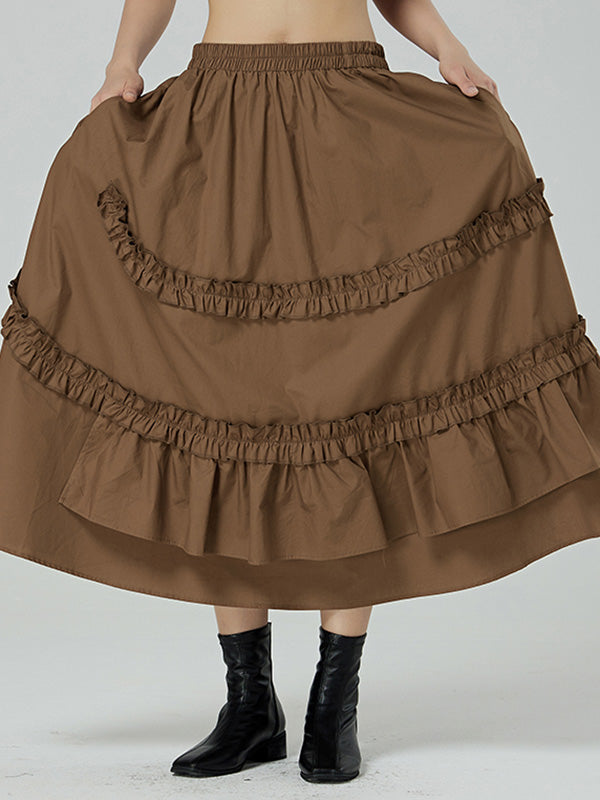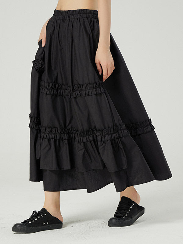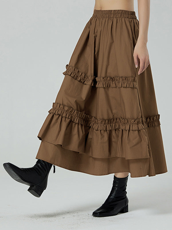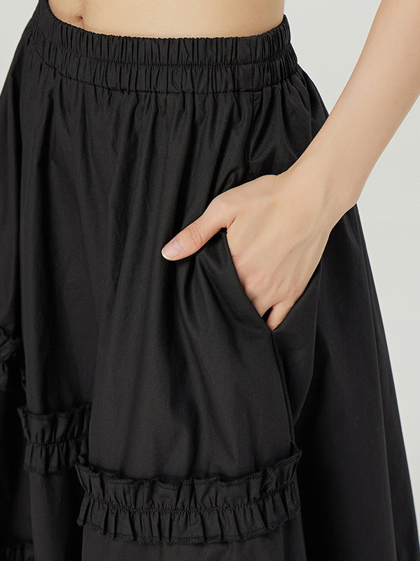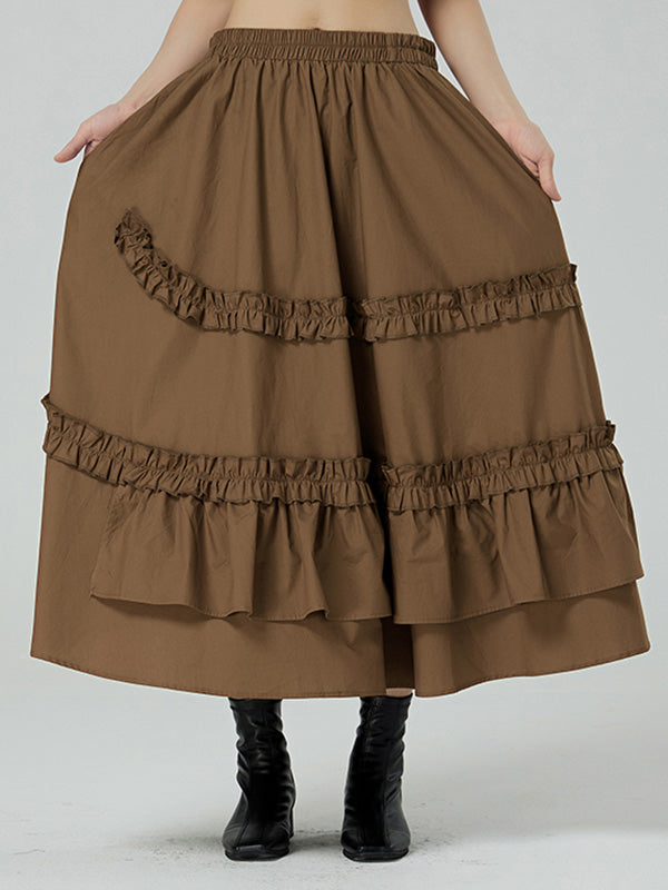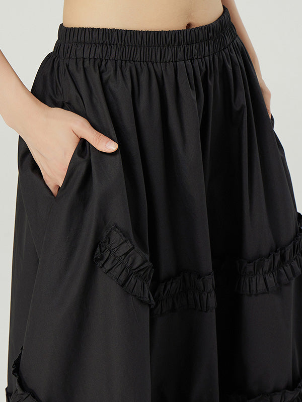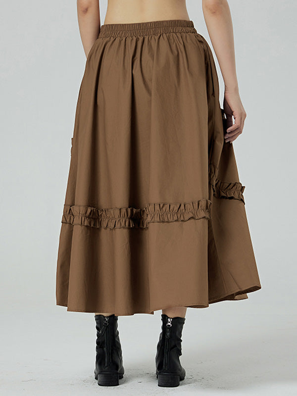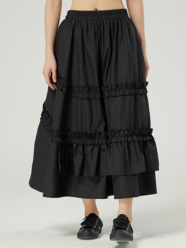 Casual Ruffled Loose Solid Color Skirts