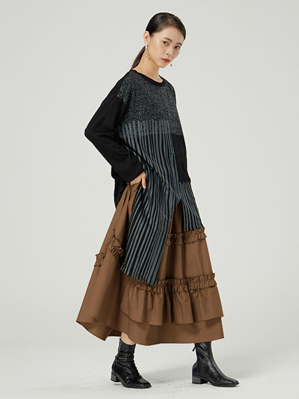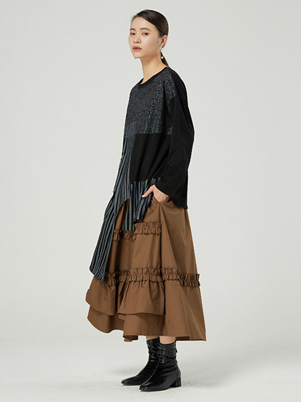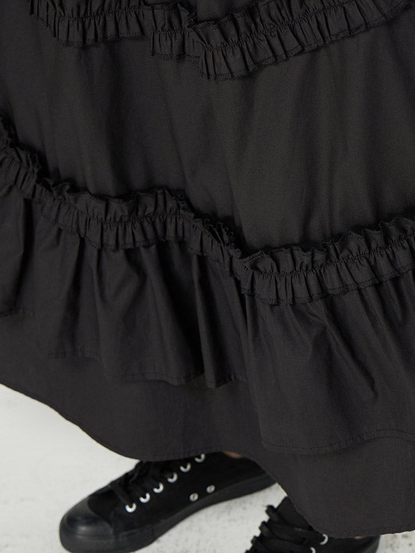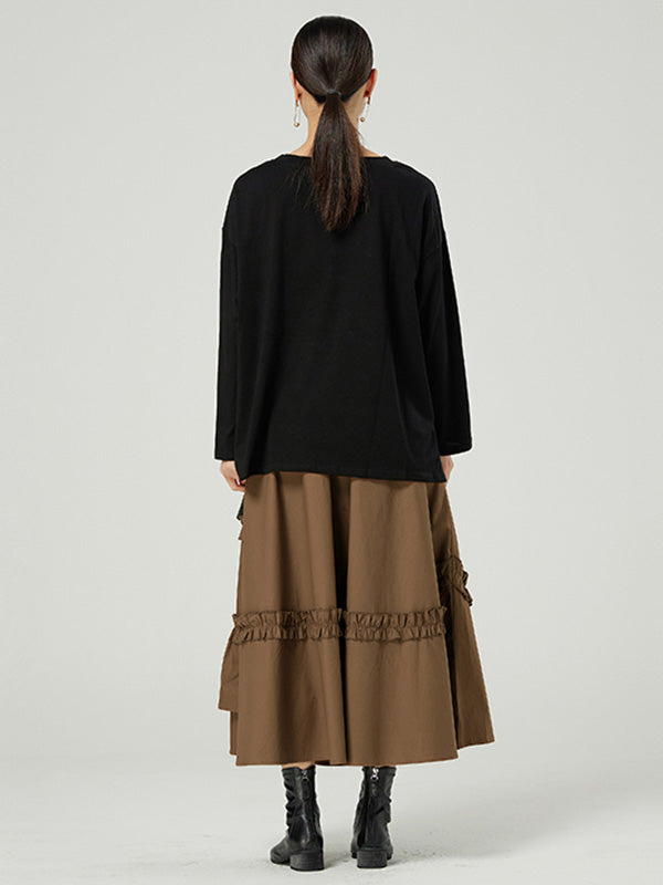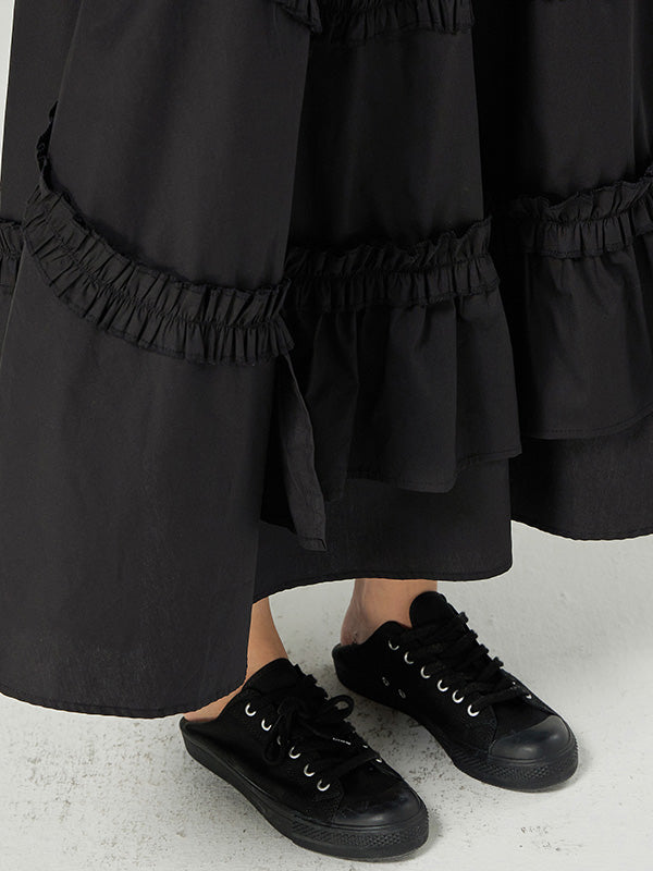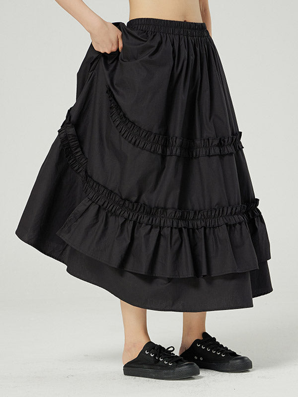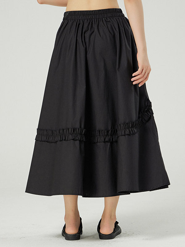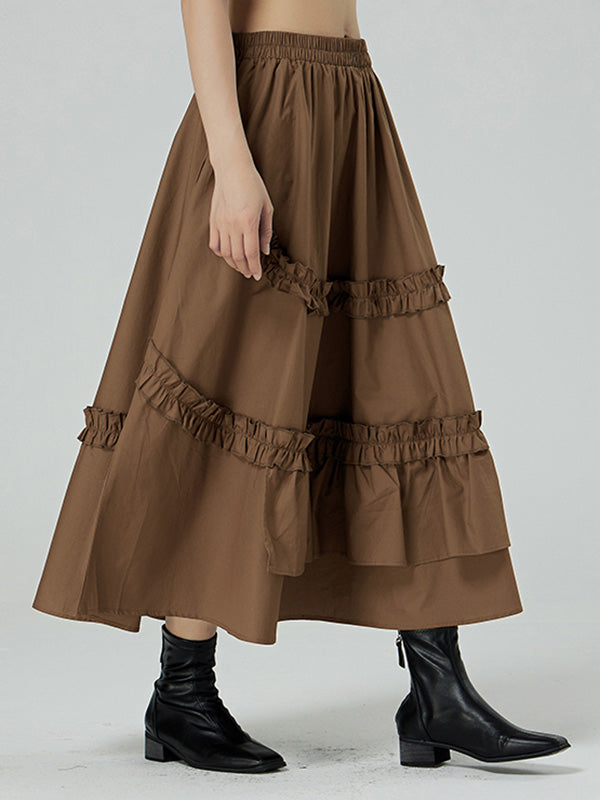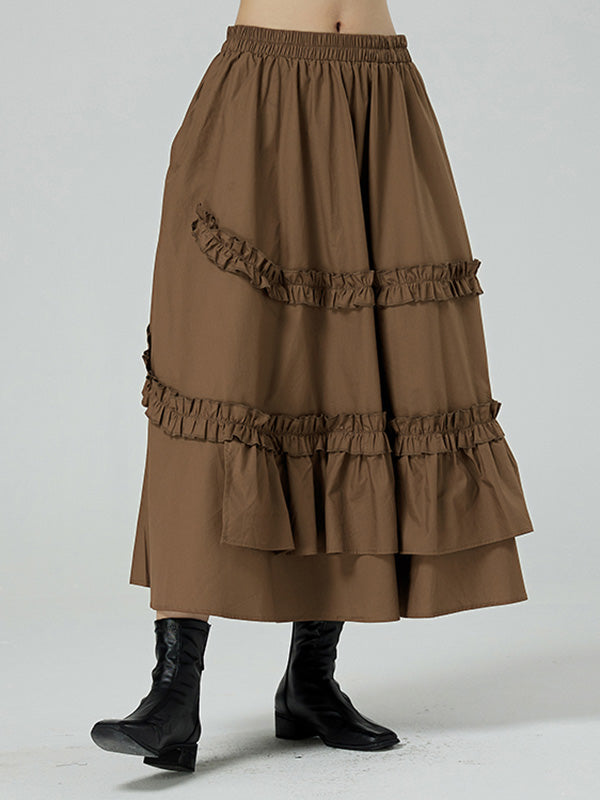 Casual Ruffled Loose Solid Color Skirts