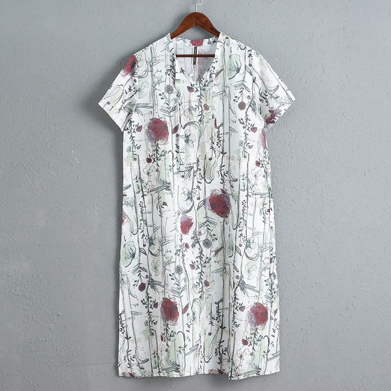 Casual Short Sleeve Linen Loose Printing Dress