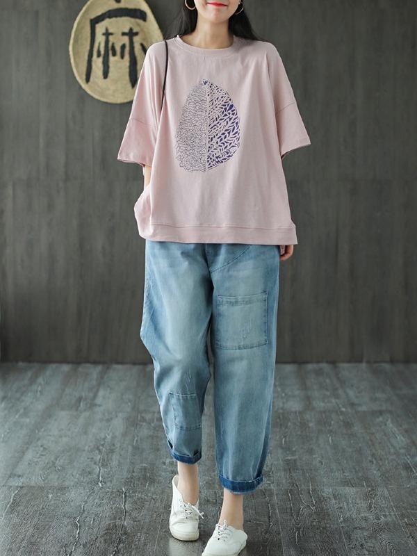 Casual Simple Leaf Printed T-Shirts