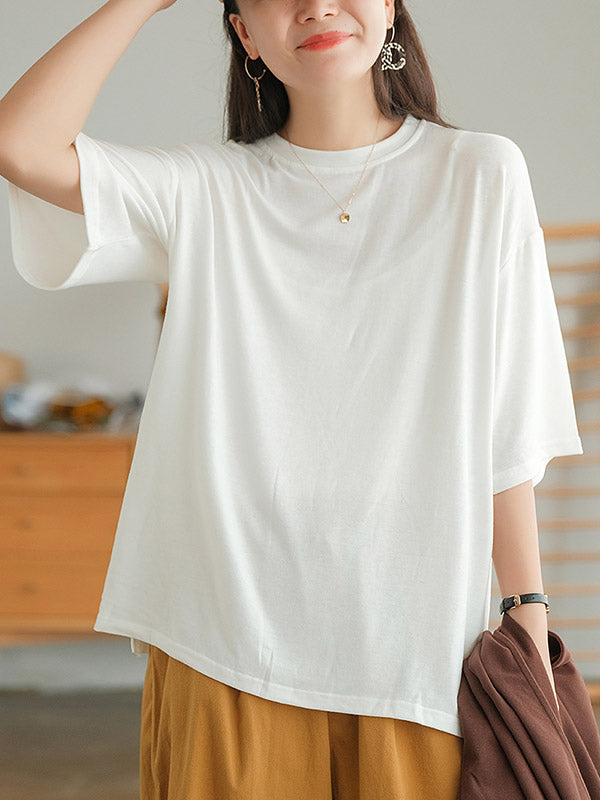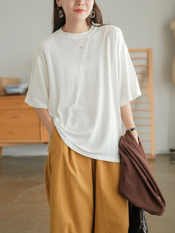 Casual Simple Solid Color Loose Round-Neck Half Sleeves T-Shirt