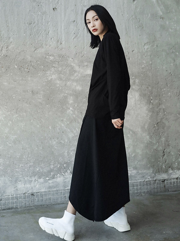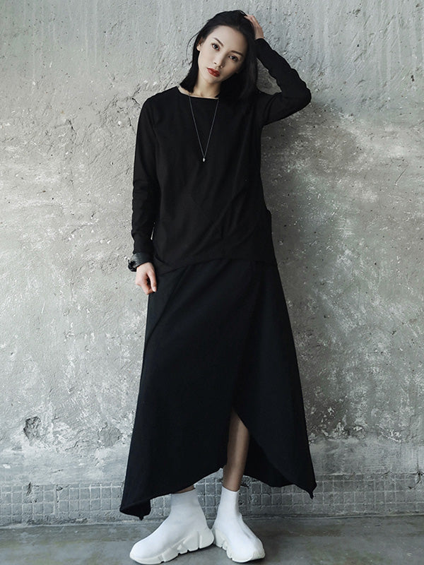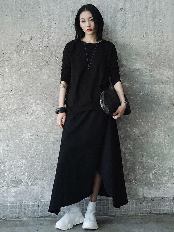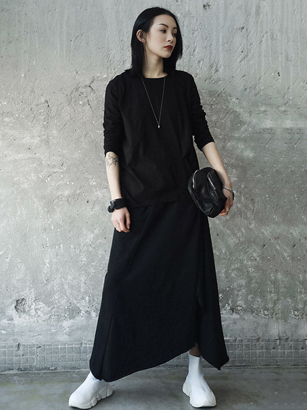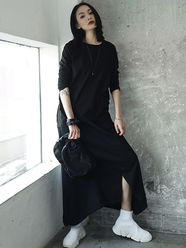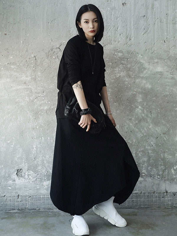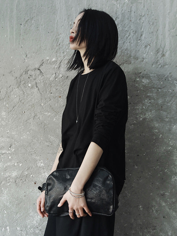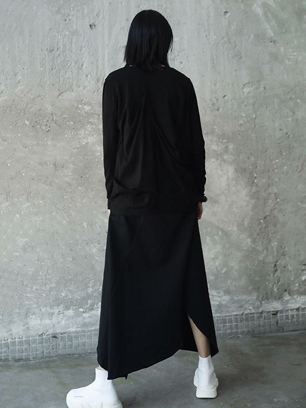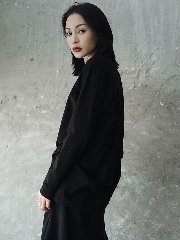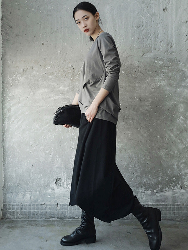 Casual Solid Color Pleated Long Sleeves Round-Neck T-Shirt Tops