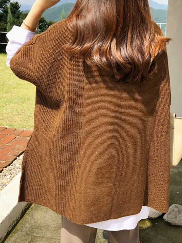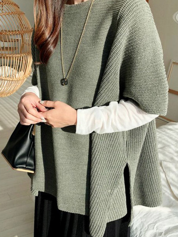 Casual Solid Color Round-Neck Half Sleeves Knitted Sweater Cape Top