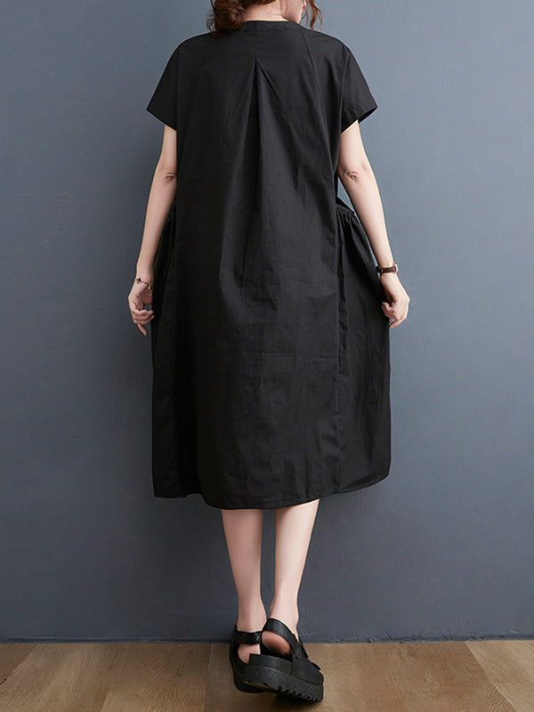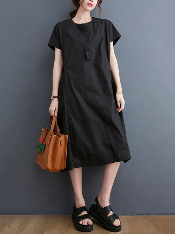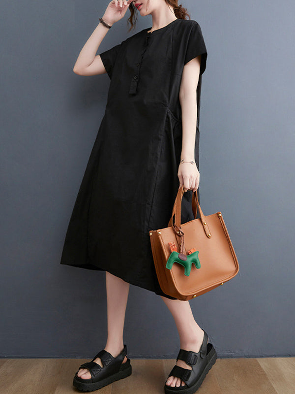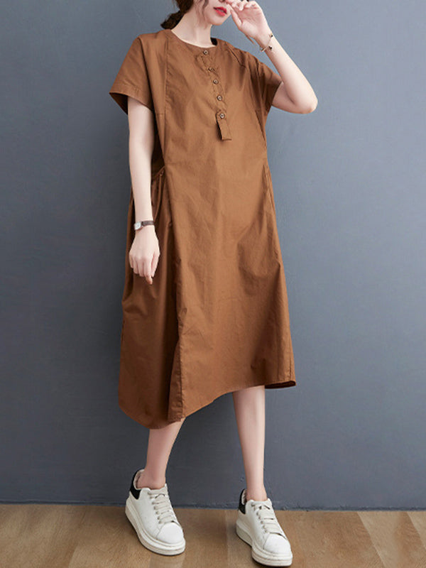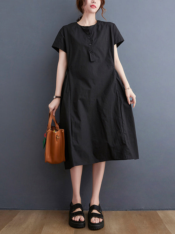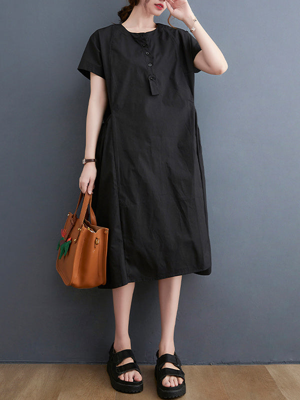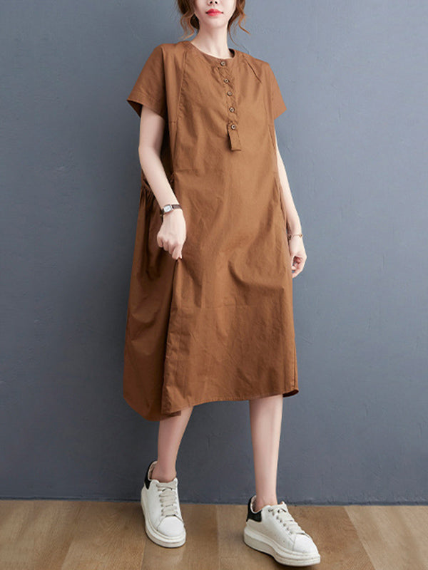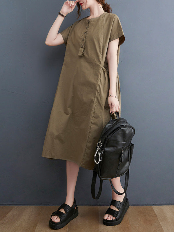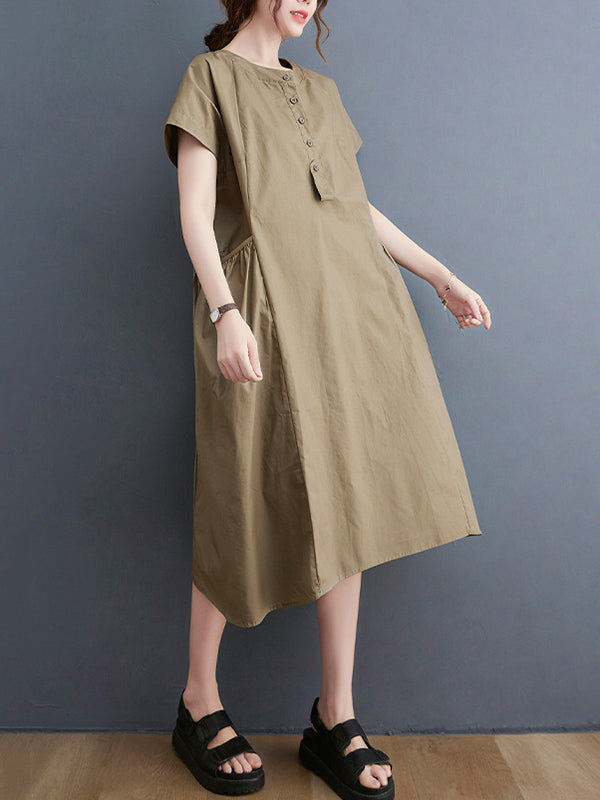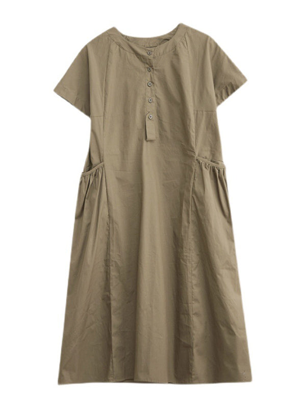 Casual Solid Color Round-Neck With Pocket Midi Dress