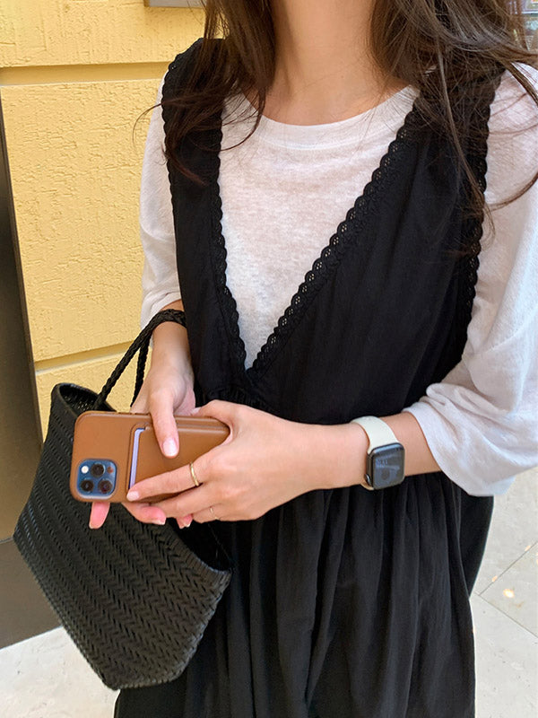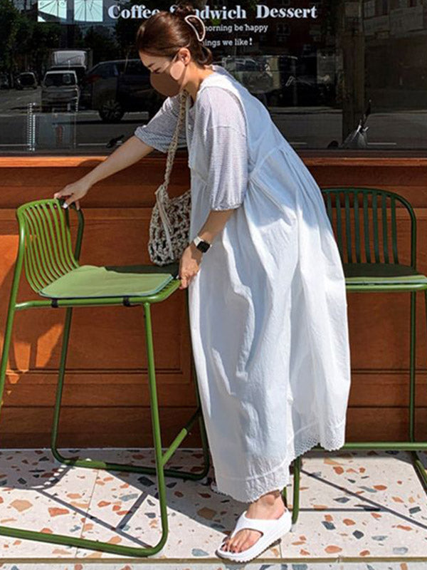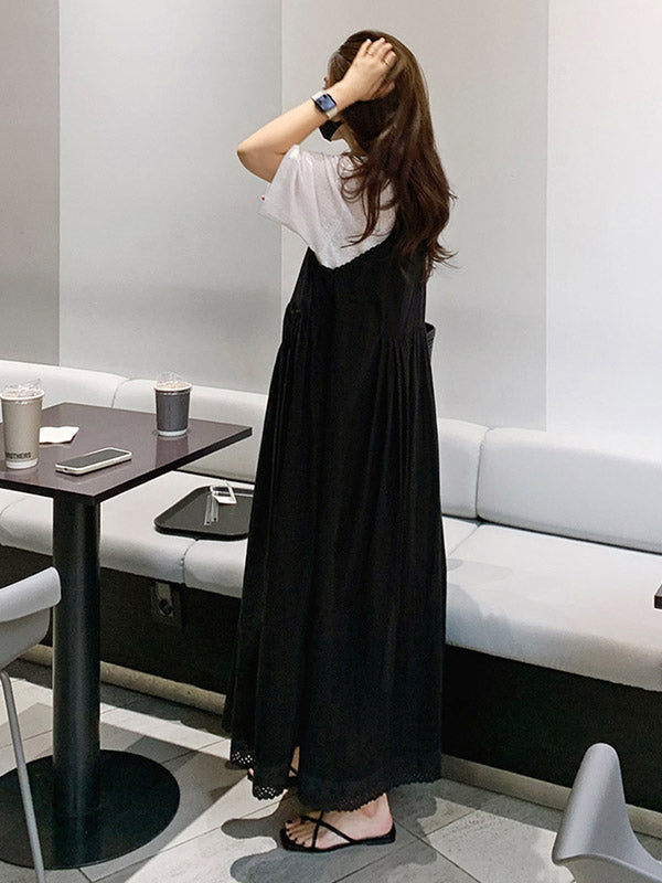 Casual Solid Color Split-Joint Pleated V-Neck Sleeveless Midi Strap Dress