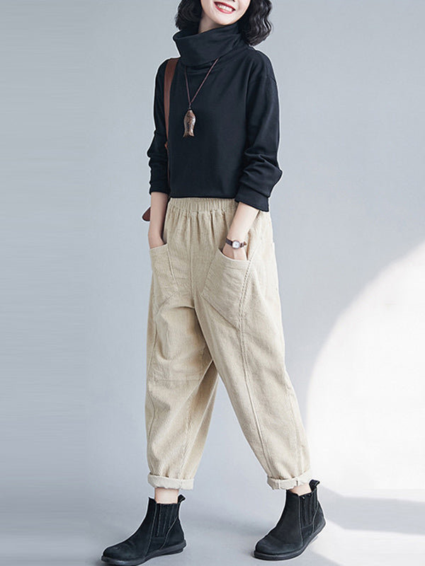 Casual Solid Color Split-Joint With Pocket Elasticity Wide Legs Corduroy Harem Pants