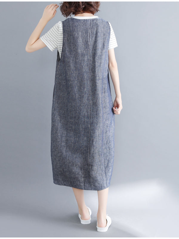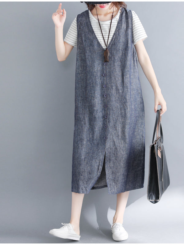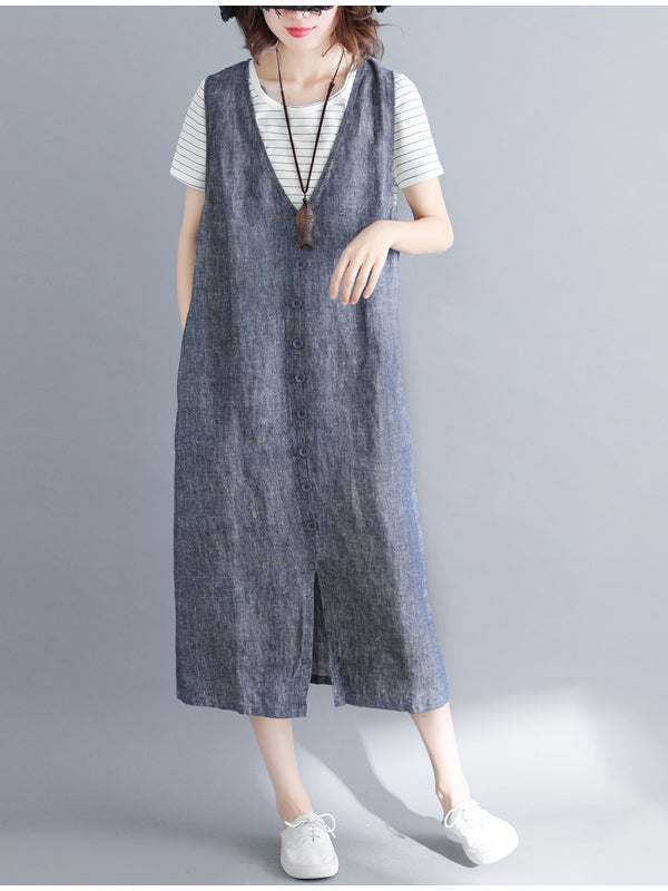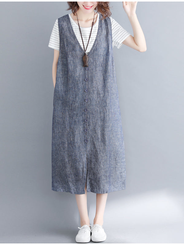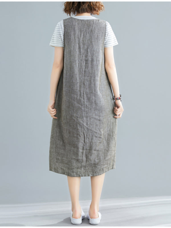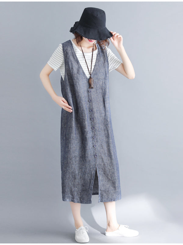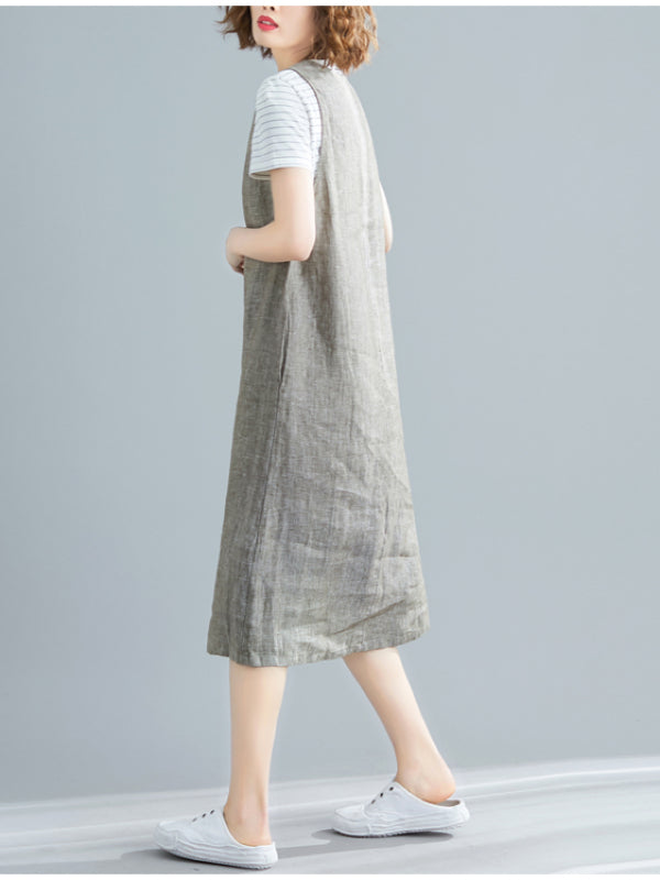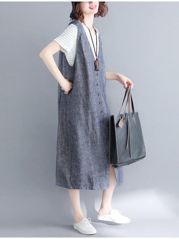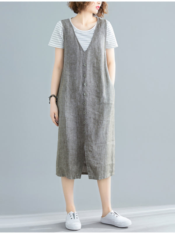 CASUAL SOLID SPLIT-FRONT WIDE STRAPS MIDI DRESS