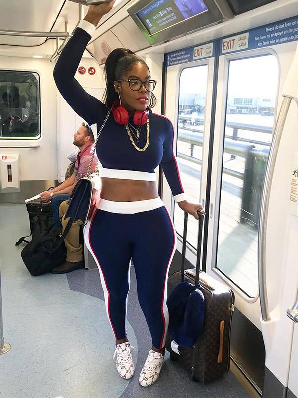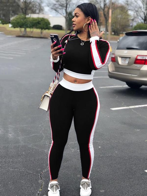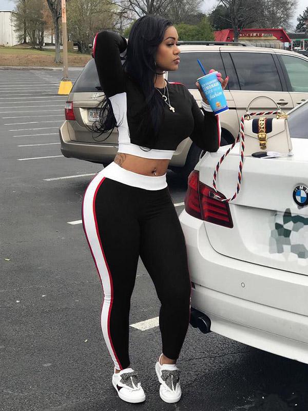 Casual Split-joint Long Sleeves Skinny Leg Sports Suit