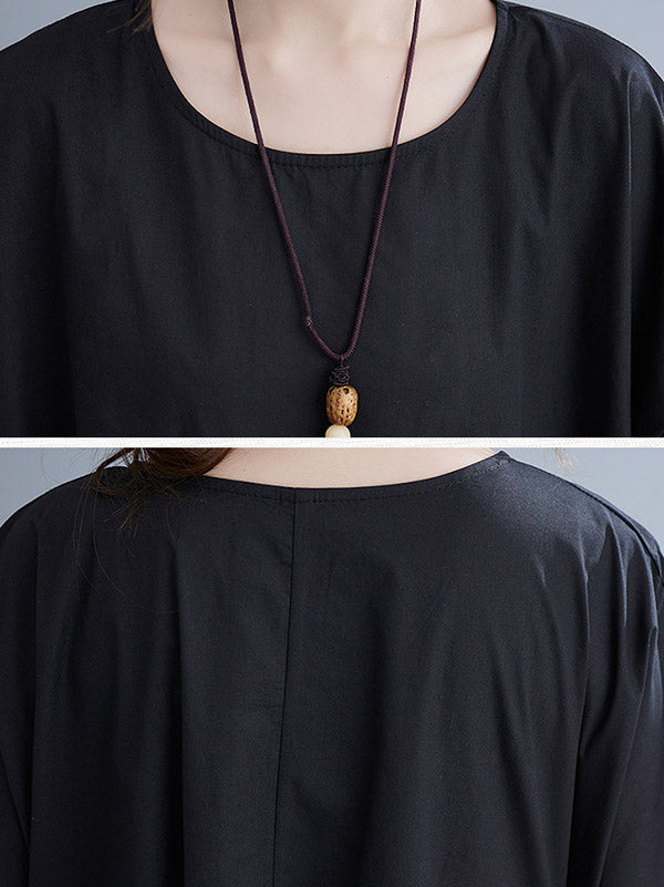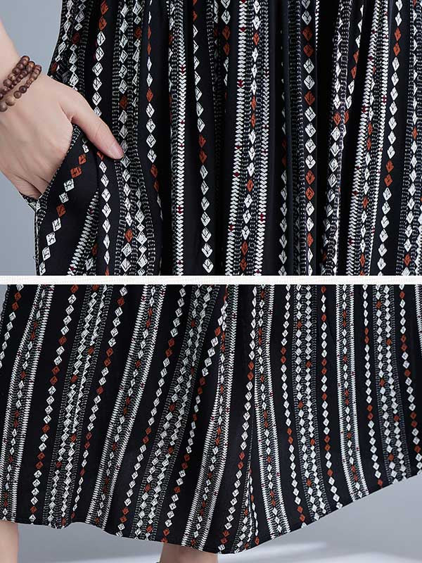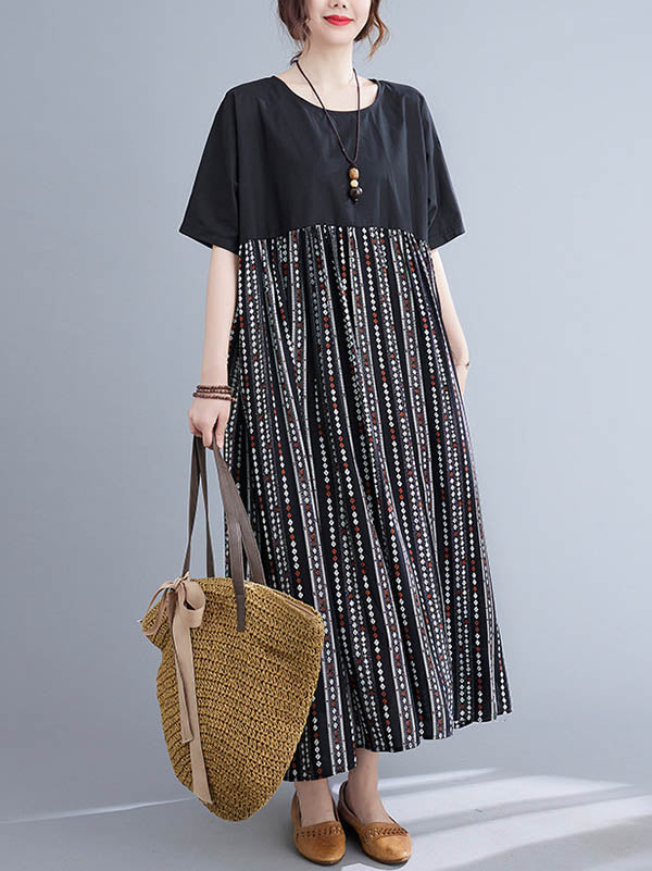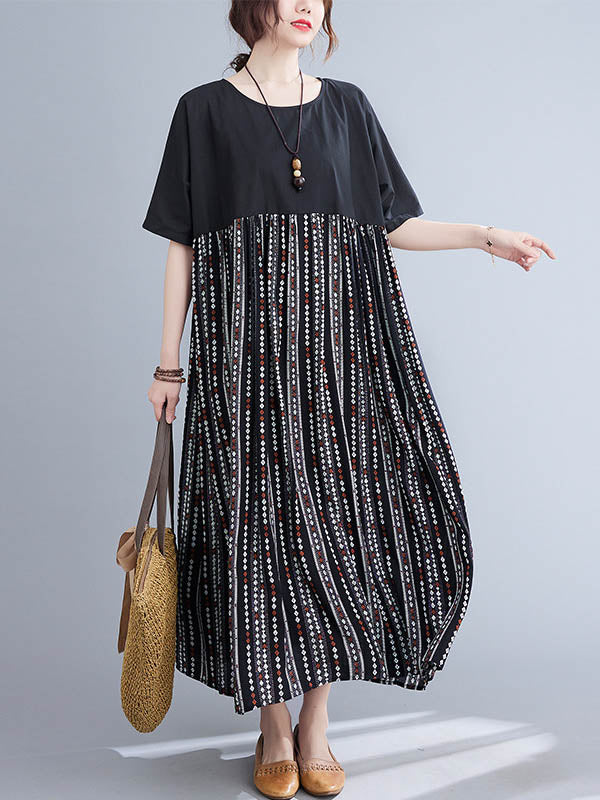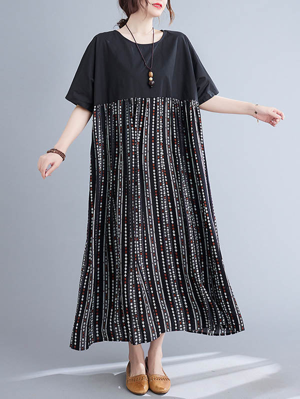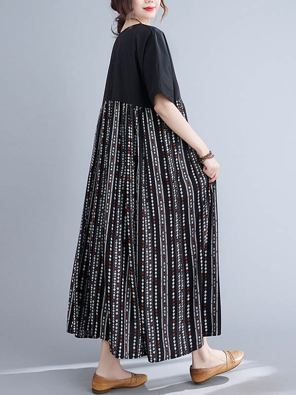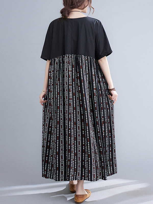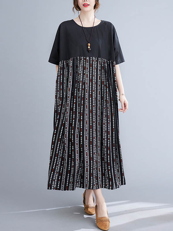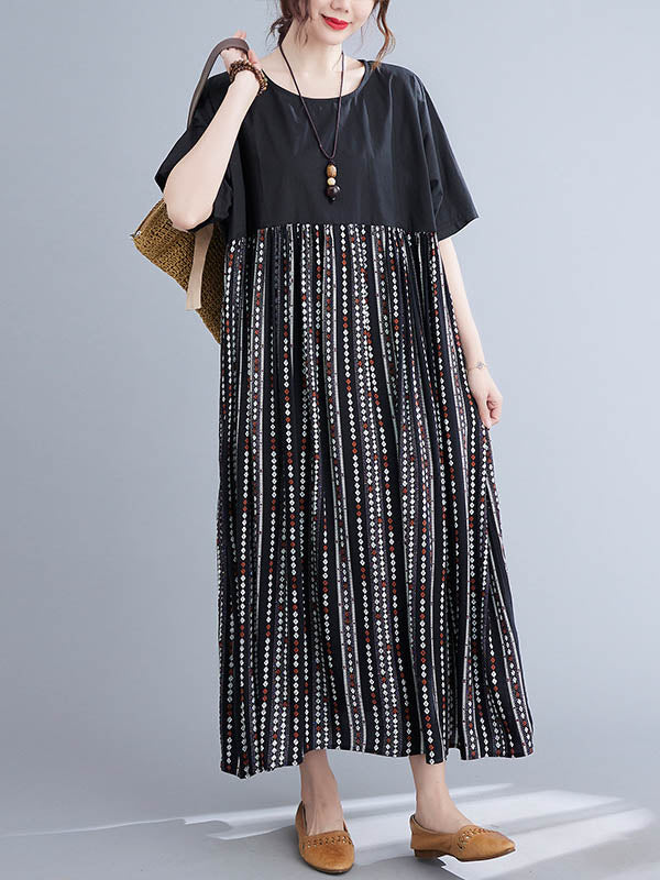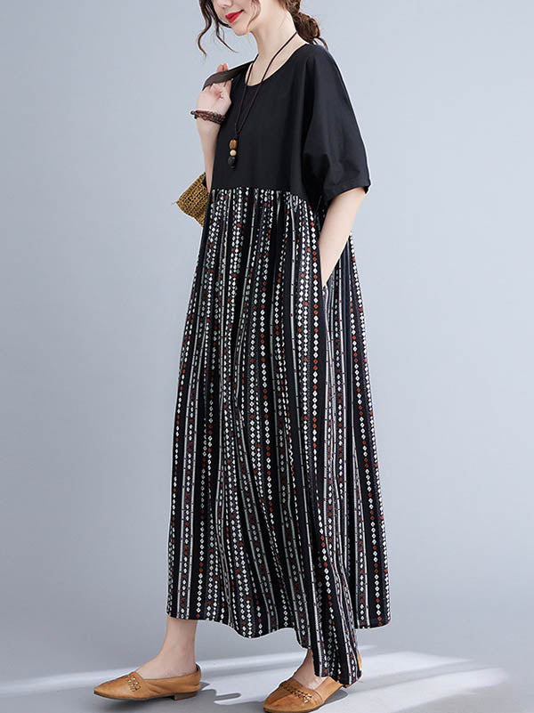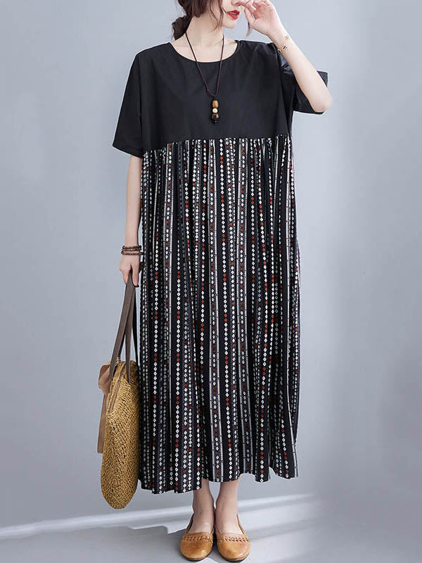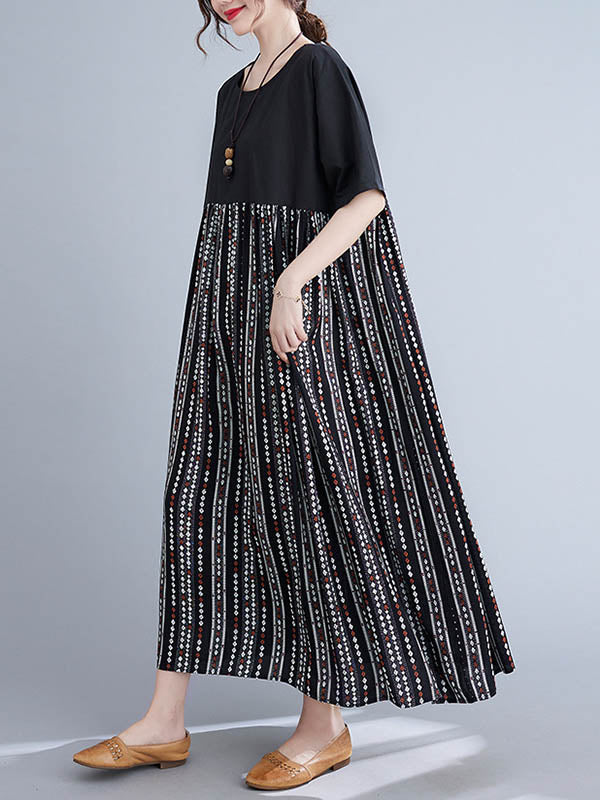 Casual Split-Joint Printed Round-Neck Half Sleeves Loose Midi Dress