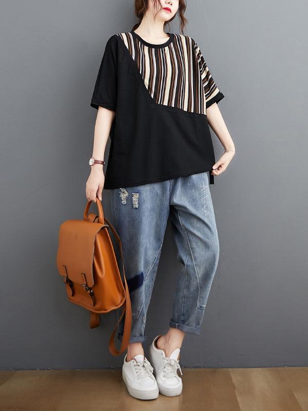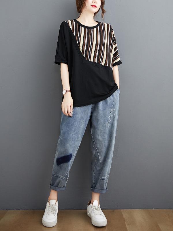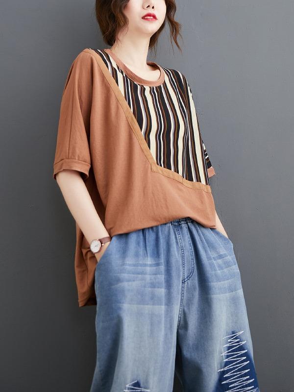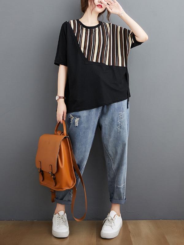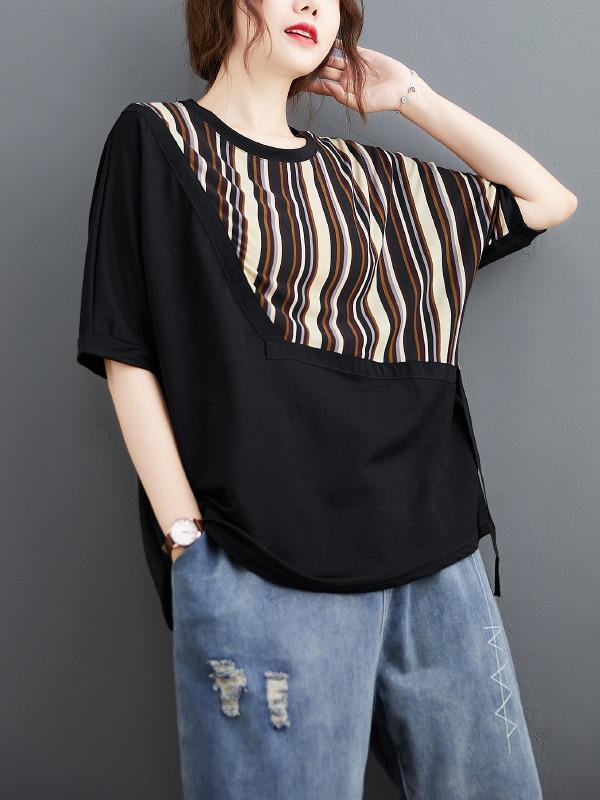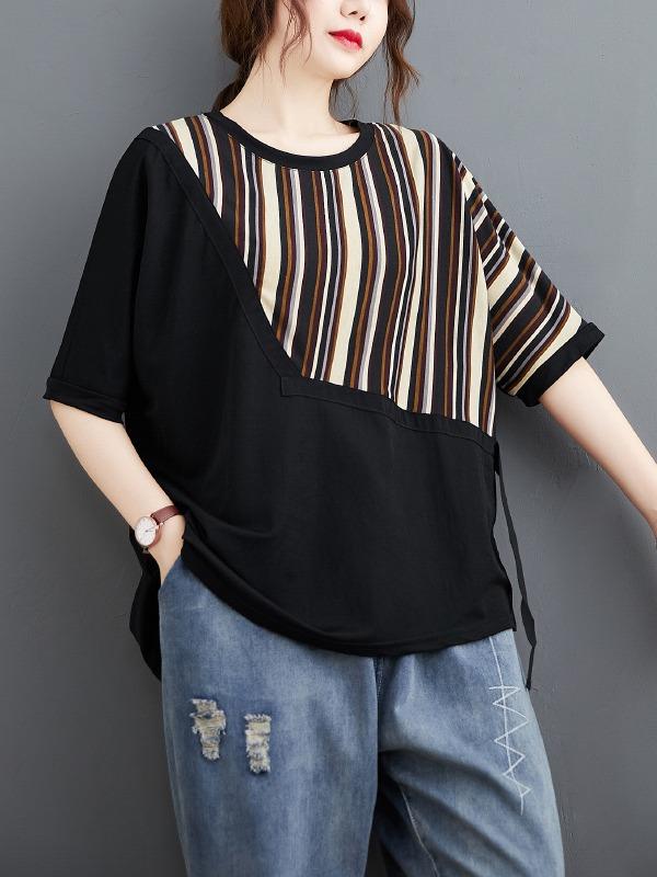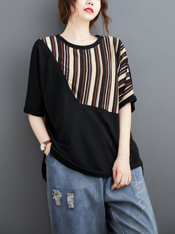 Casual Split-Joint Striped T-Shirts