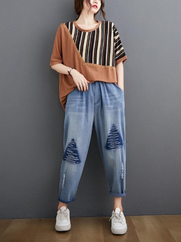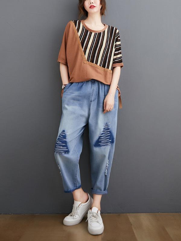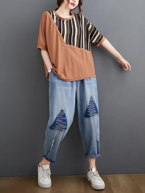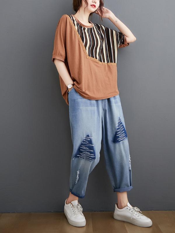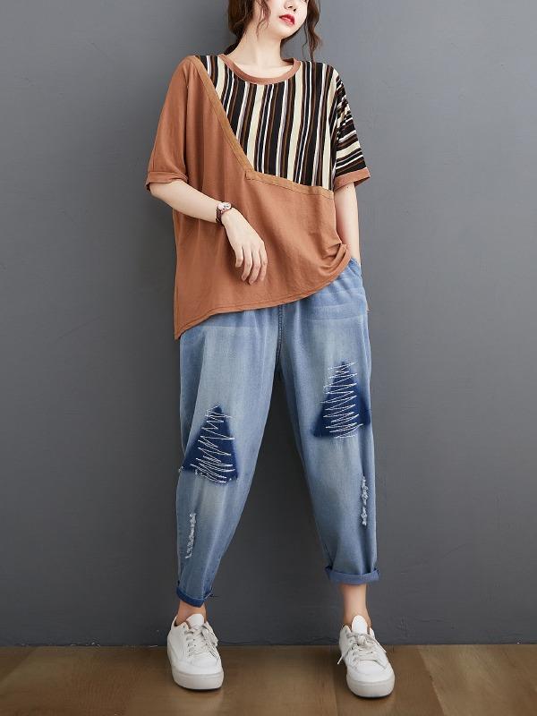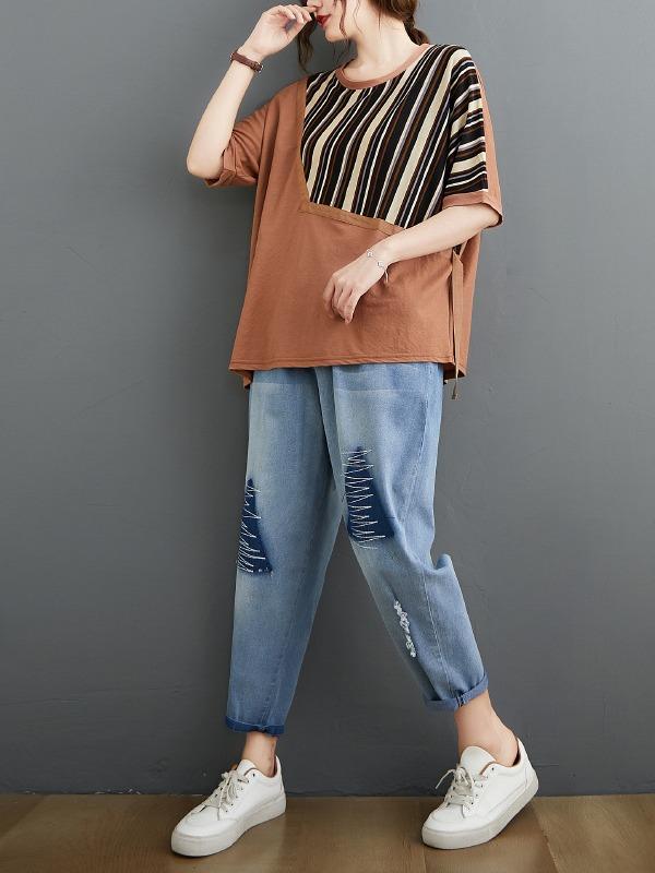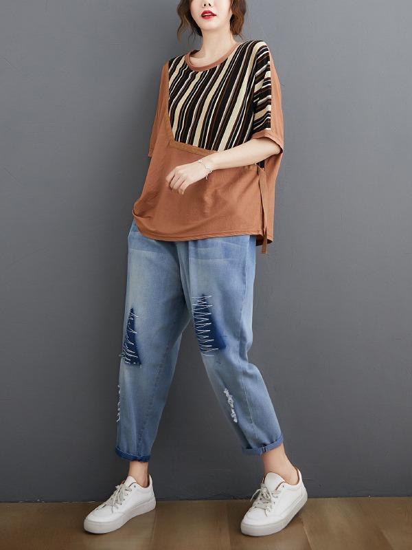 Casual Split-Joint Striped T-Shirts
