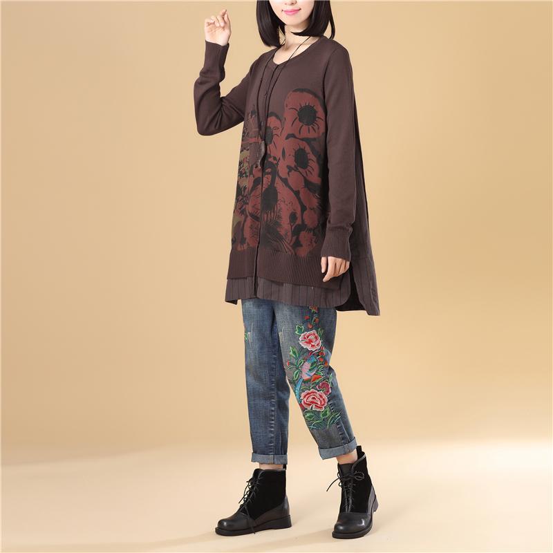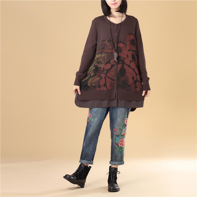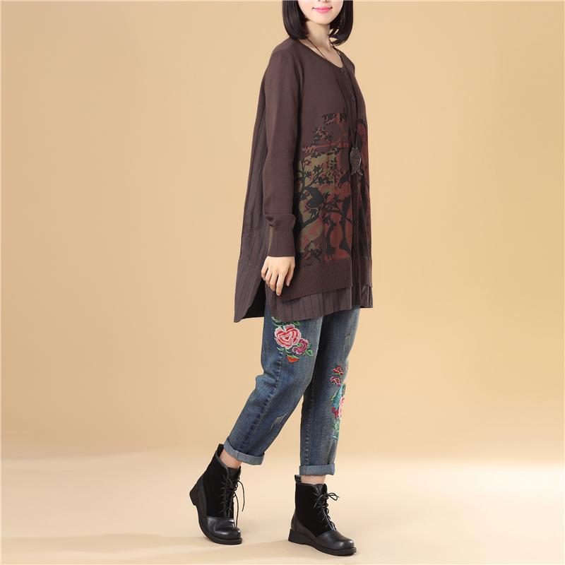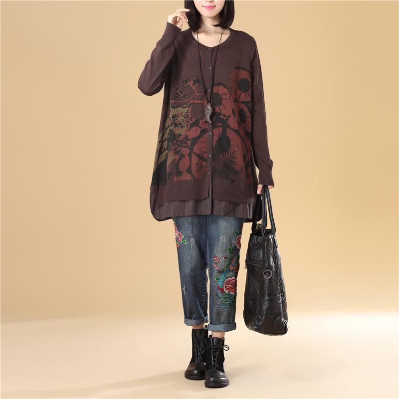 Casual Women Single Breasted Long Sleeve Coffee Printing Sweater