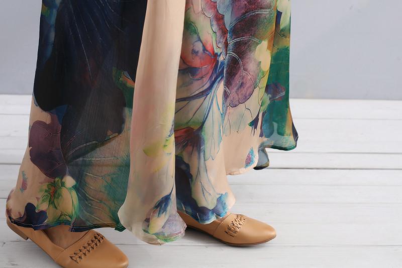 Print long sleeve dress, made of polyester material. Choosing a pair of elegant ballerinas and handbag, you look very fashion.