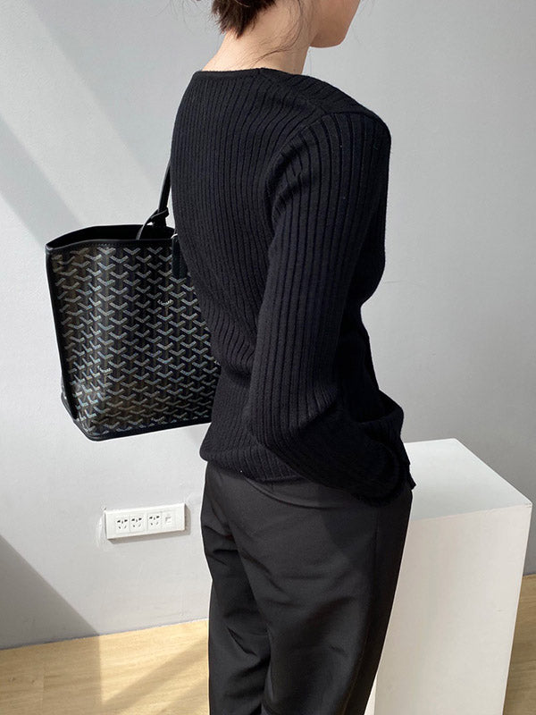 Chic Simple 5 Colors Split-Front V-Neck Long Sleeves Knitted Sweater Tops