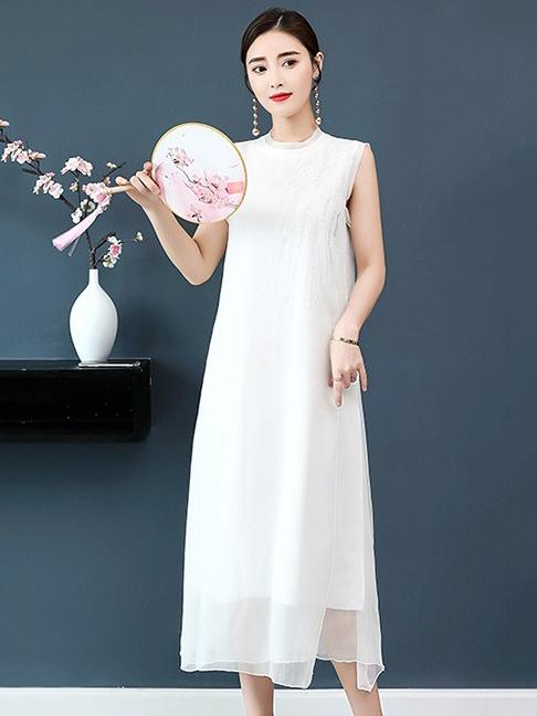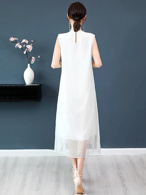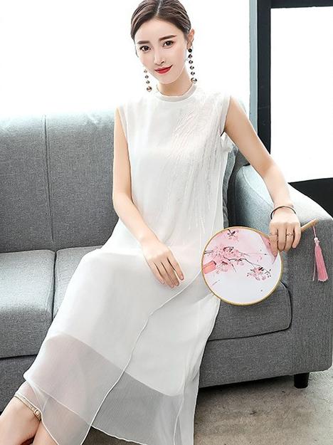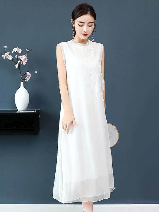 Chiffon Embroidery Vest Dress