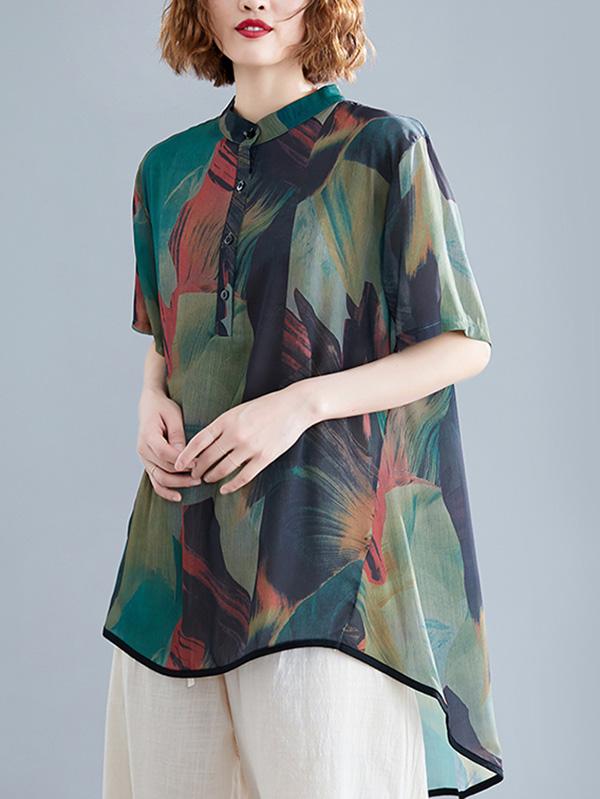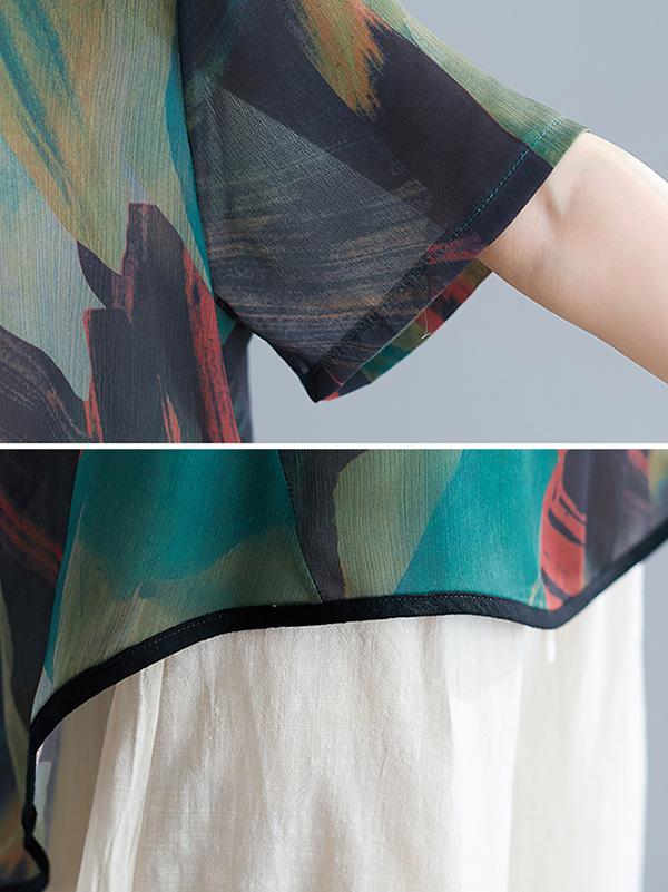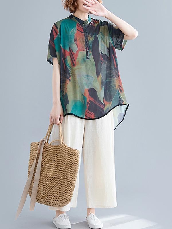 Chiffon Printed Short Sleeves Shirt + Wide Leg Pants Suits