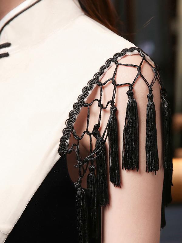 Chinese Velvet Long Traditional Evening Dress With Knotting