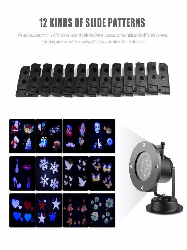 Package has 12 kinds of slides you can change according to the kind of occasion (Christmass, Party, Halloween, etc.)