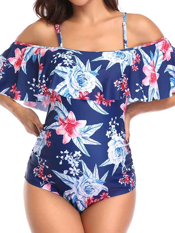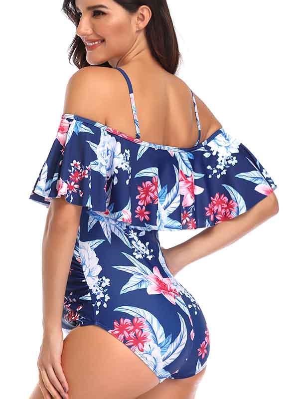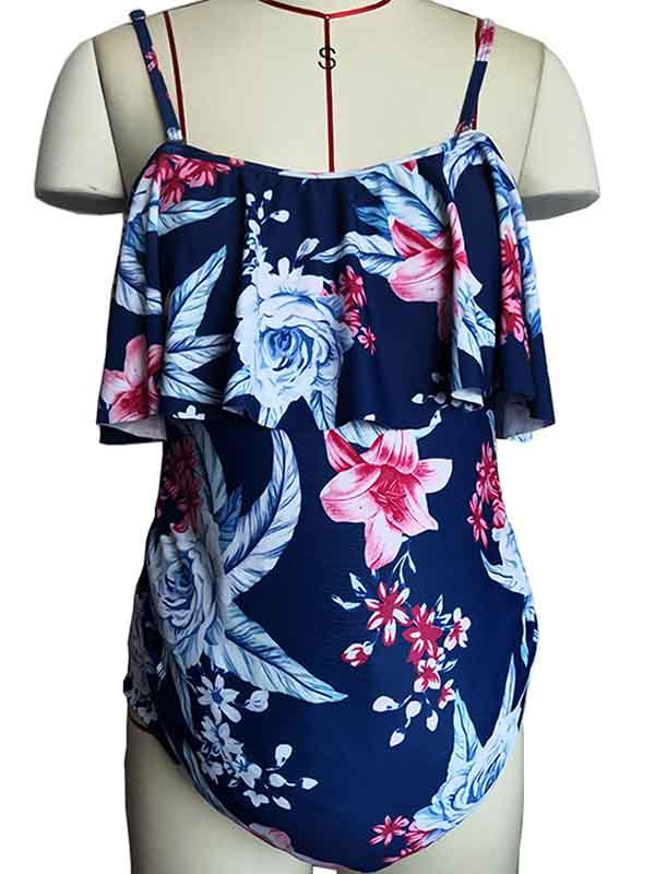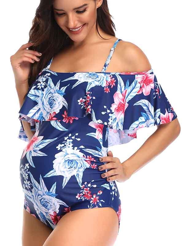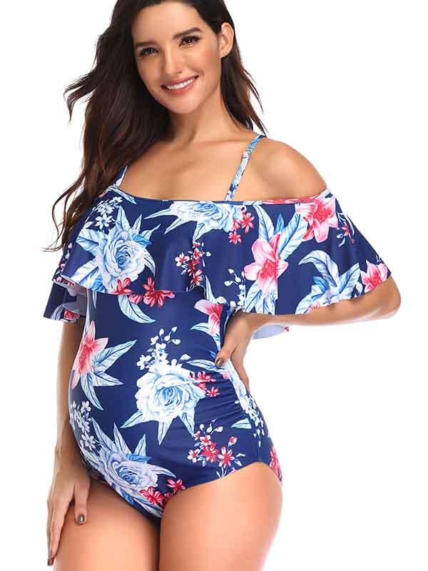 Cold Shoulder Floral Flounce Maternity One Piece Swimsuit