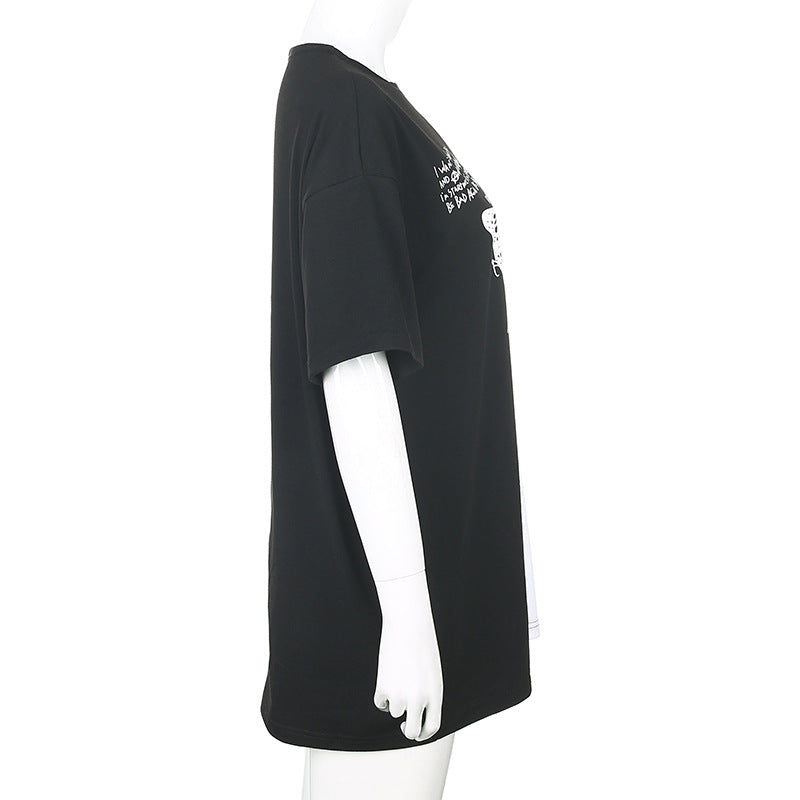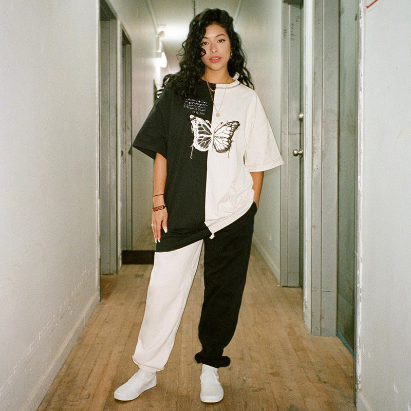 Colorblock butterfly print loose thin short sleeve T-shirt ACTIVEWEAR